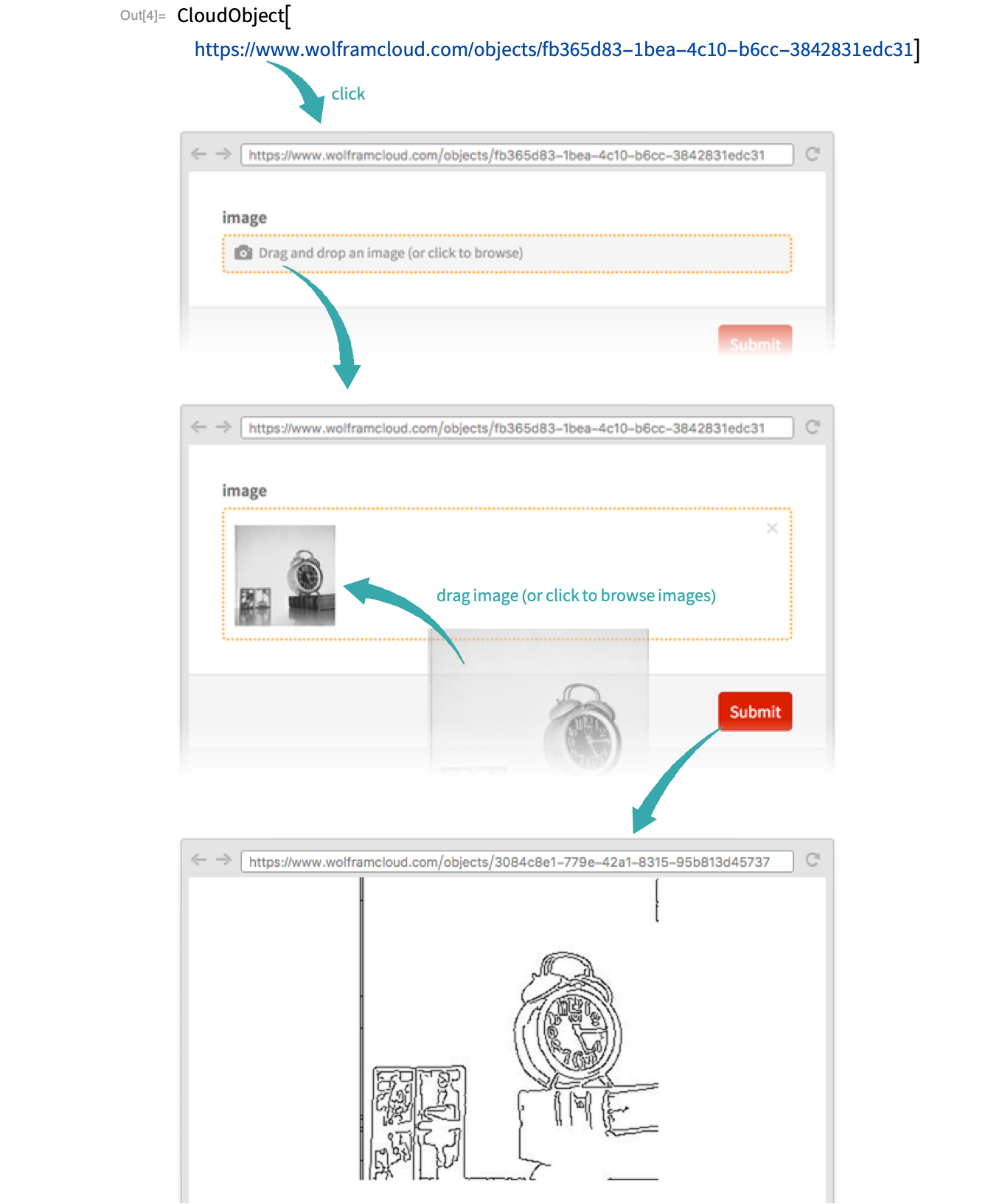 Click the link in the CloudObject output of CloudDeploy to visit the image processing website:
