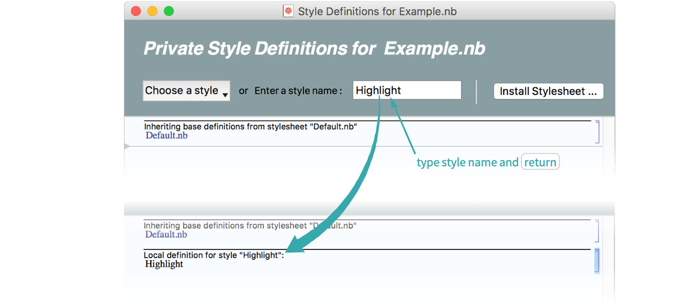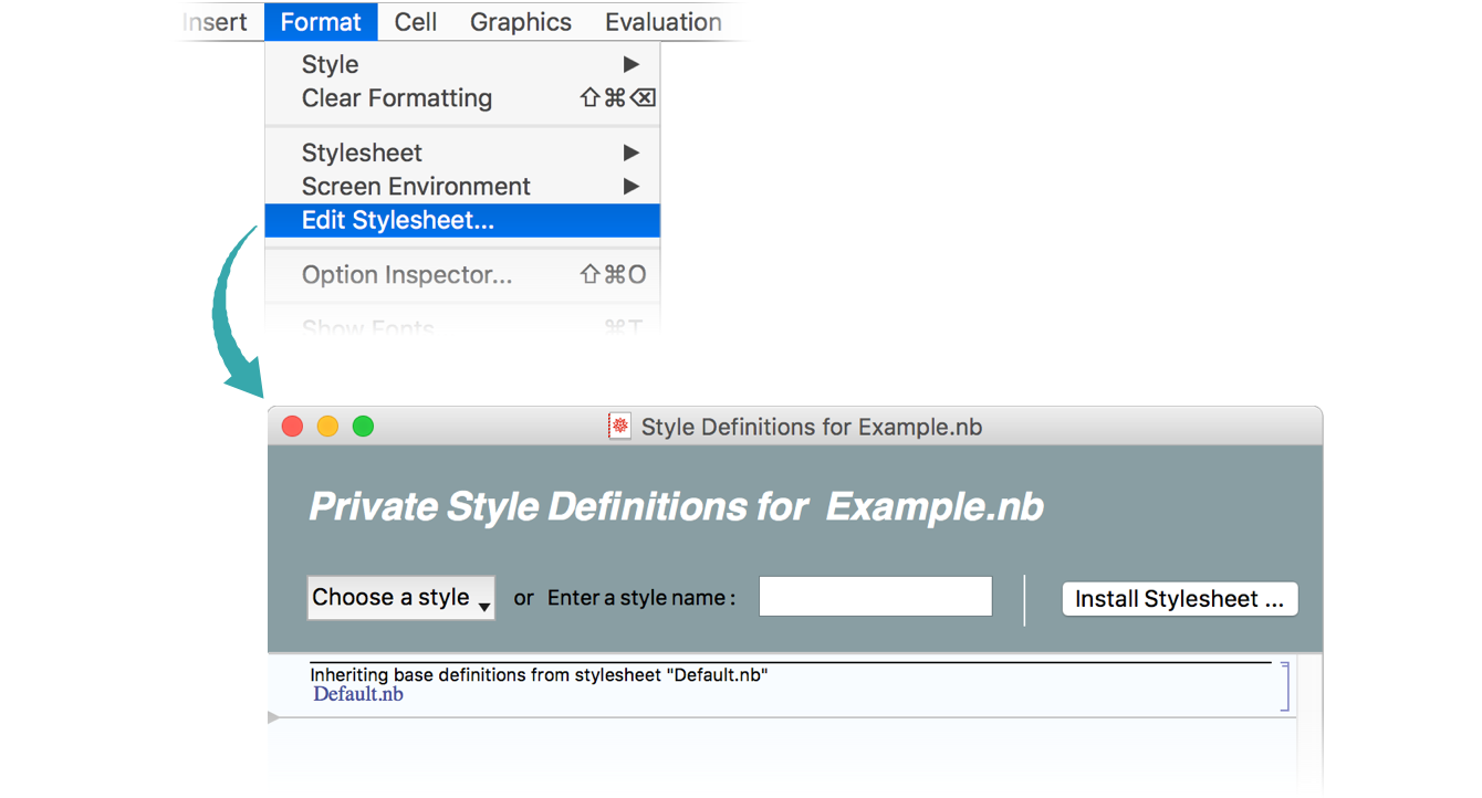Choose Format ▶ Edit Stylesheet... to open a notebook’s stylesheet: