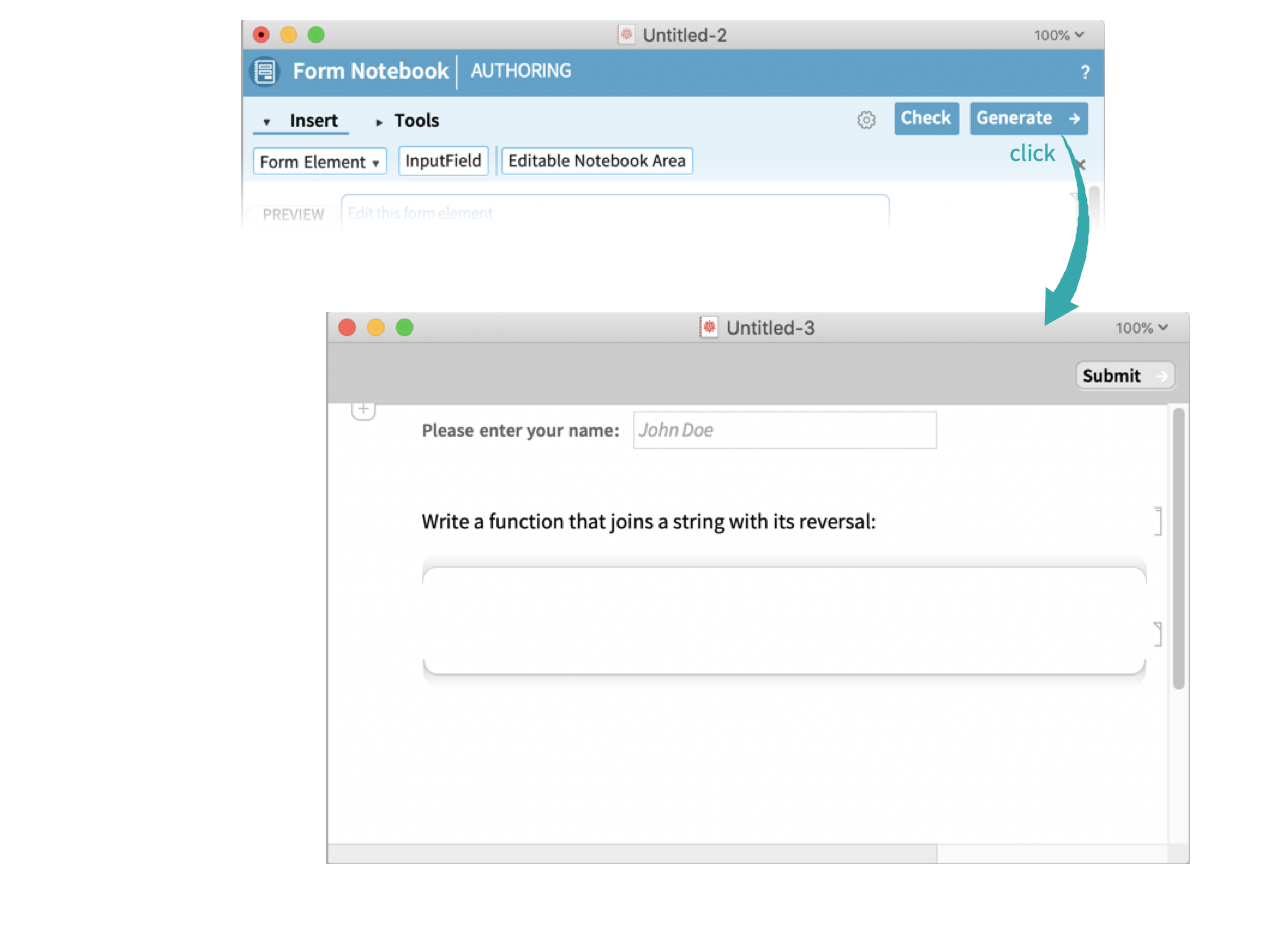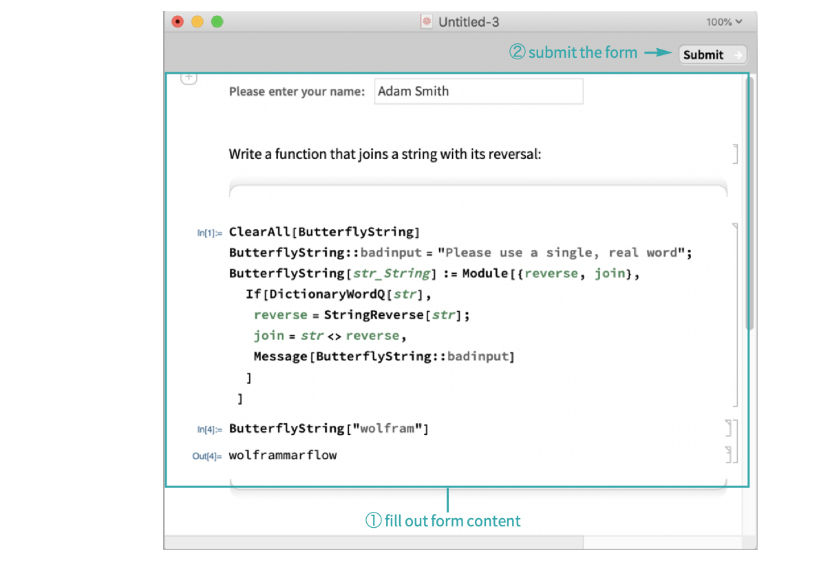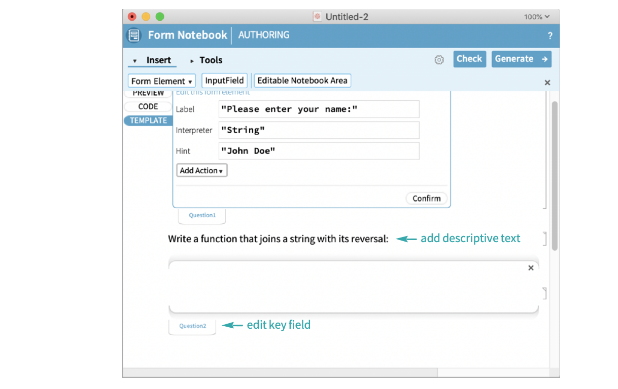 Form notebooks—structured, form-like content in Wolfram Notebooks—have a WYSIWYG-like authoring environment, optimized for inserting form elements and open coding areas to be later imported into an Association.