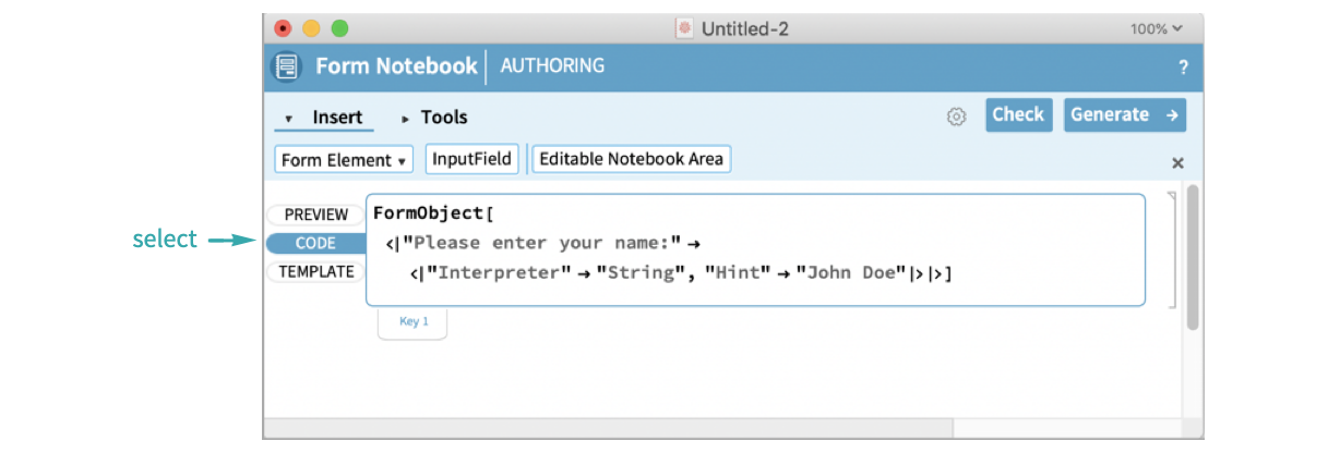 - Alternatively, you can open a new form authoring notebook programmatically using CreateNotebook["FormNotebookAuthoring"].