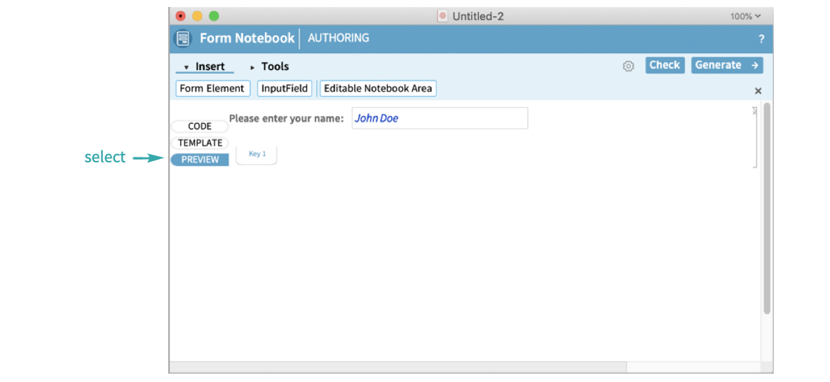 Use preview to examine how the information will look in a WYSIWYG fashion before generating the form notebook: