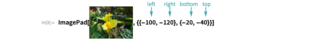 Trim given amounts from the sides of an image using ImagePad with negative values: