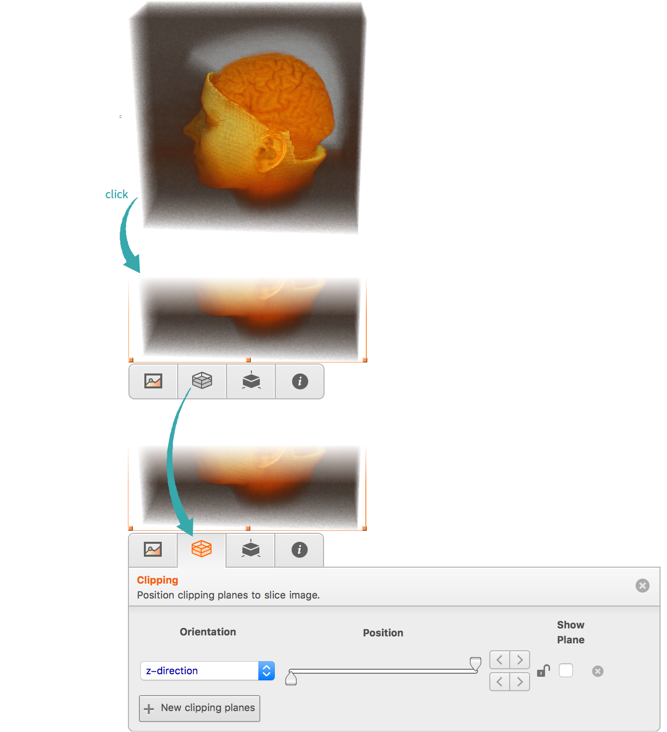 Click a 3D image to expose the image toolbar and select the clipping tool: