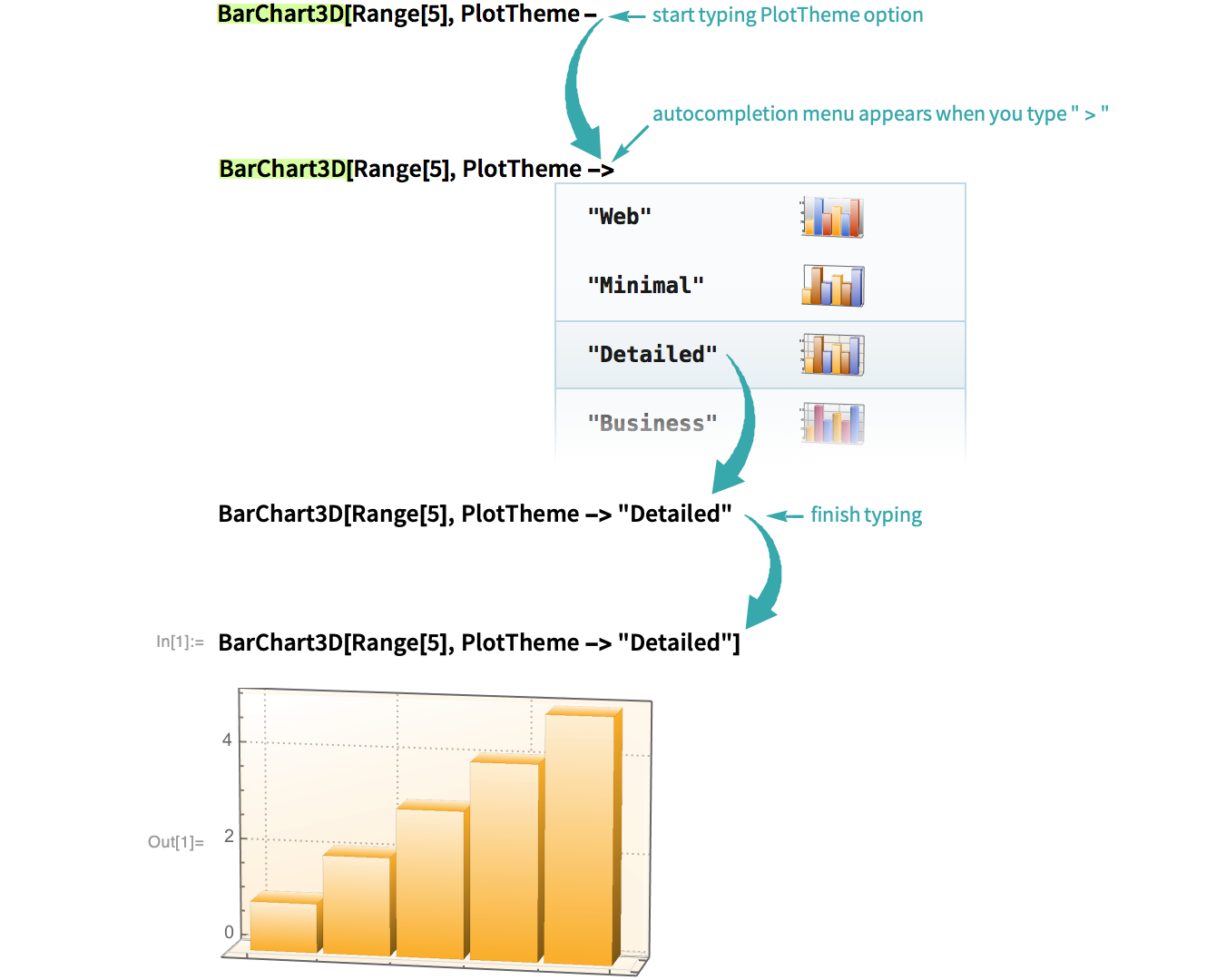 Plot themes provide prepackaged styles for charts and plots. Specify a plot theme to get a customized appearance. Autocompletion helps you select the appropriate theme: