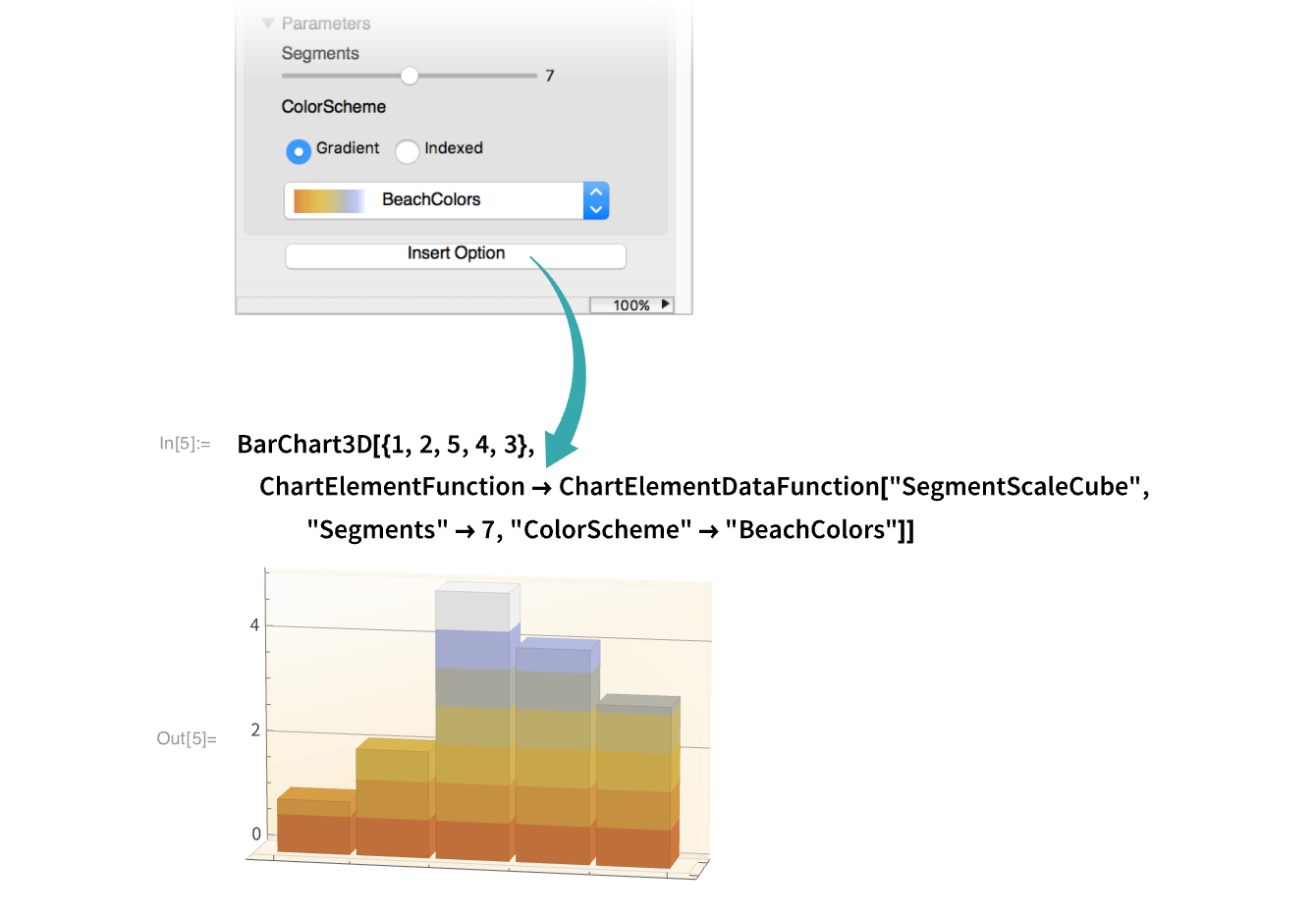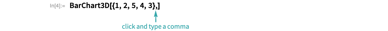 Click before the closing bracket (]) of the input expression and type a comma in preparation for inserting chart options: