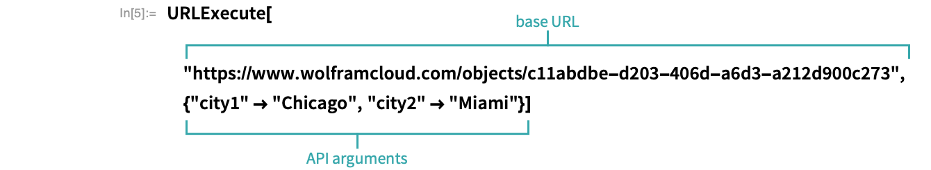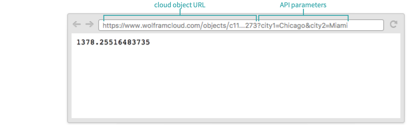 Create an APIFunction that returns the distance between two cities. In this example, TravelDistance returns a Quantity. Applying QuantityMagnitude to that result extracts just the numeric value, which is easier for an external program to process than a Quantity: