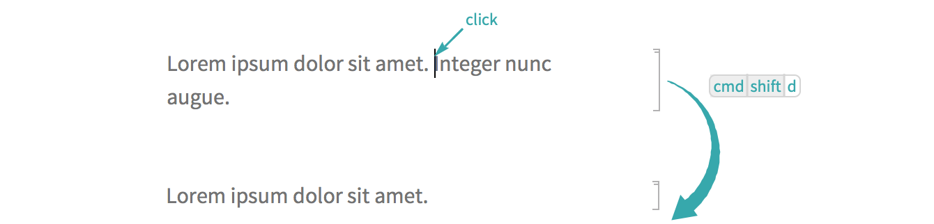 - A cell with a text selection will divide into three cells containing the content before, within and after the selection.