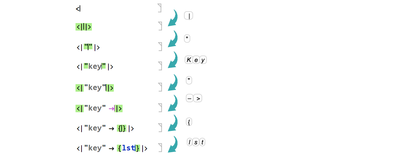 The notebook front end also automatically matches other delimiters that open and close expressions, including { }, ( ), <| |>, (* *), " ".