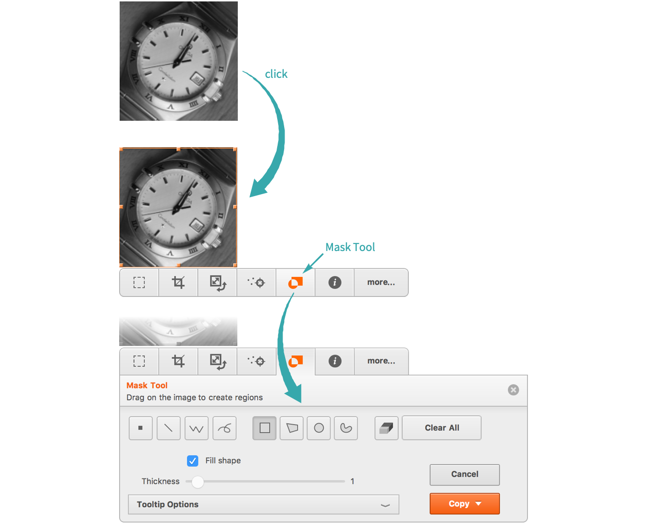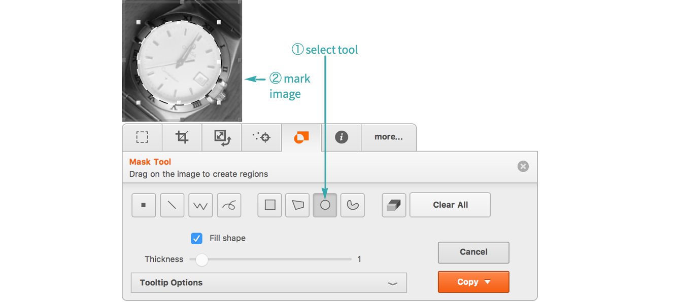 Use the drawing tools to mark one or more areas in the image. You can move and resize an area to fine-tune it after you have drawn it: