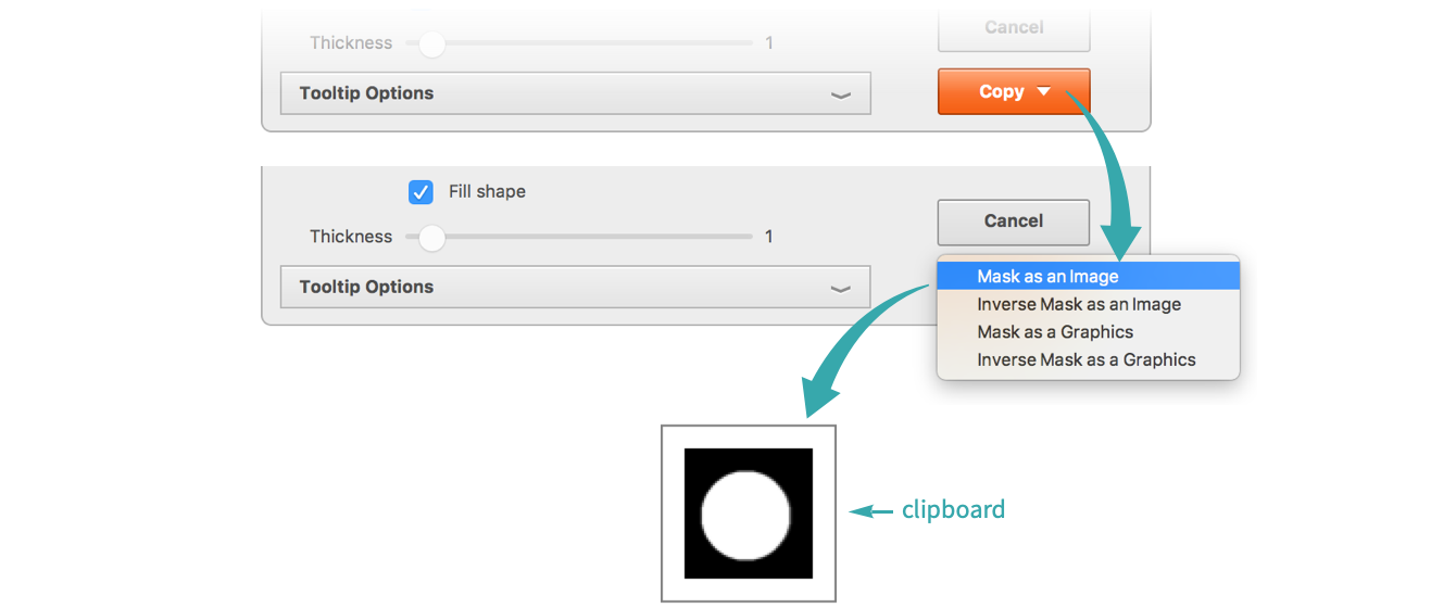 Click Copy and choose the format to copy to the clipboard (the region is referred to in the menu as a “Mask”):