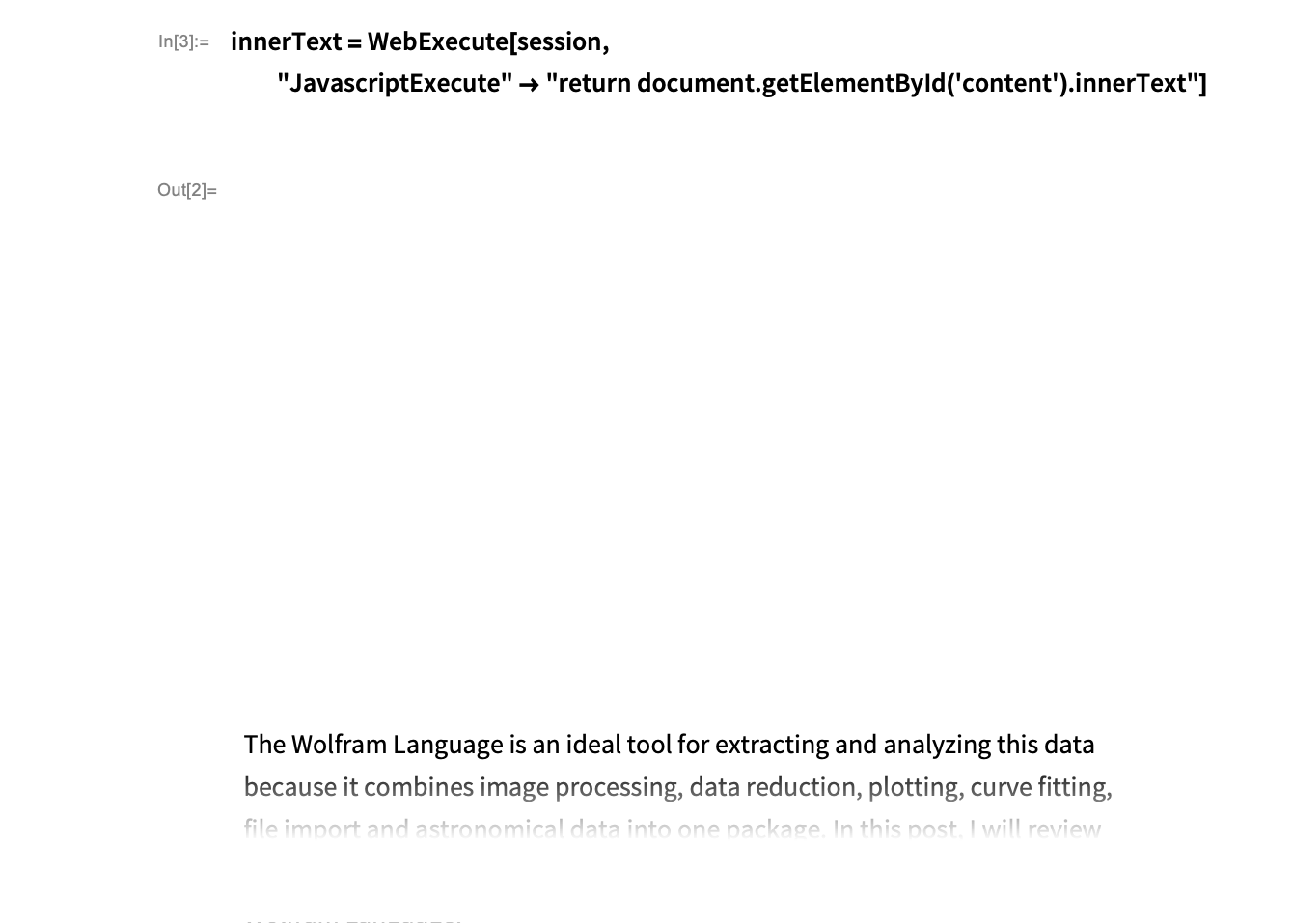 Use WebExecute to get the rendered text content of a node and its descendants.