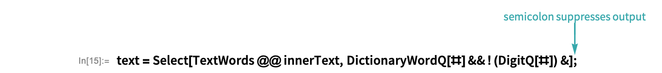 StartWebSession WebExecute TextWords DictionaryWordQ ToLowerCase DeleteStopwords WordCloud StringRiffle WordCounts BarChart DeleteObject