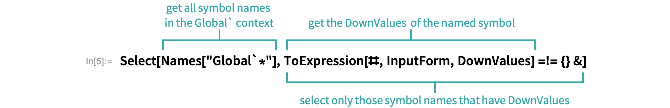 Every Wolfram Language symbol exists in a “context”. Built-in symbols are in the System` context, and by default, user-defined symbols are in the Global` context. When a new session is started, the Global` context is normally empty: