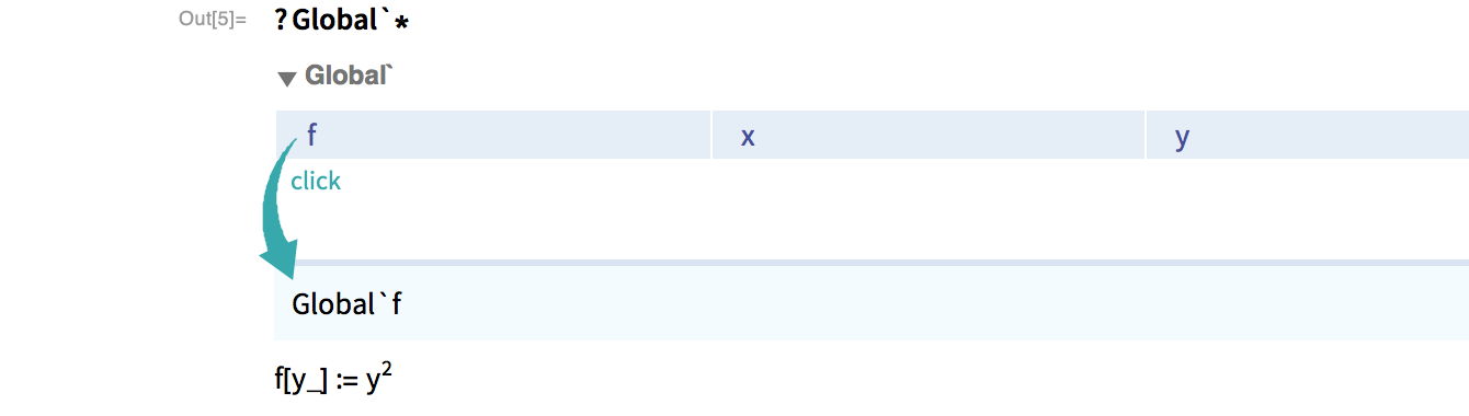 When you define a function, the function name is added to the Global` context along with the function’s parameters: