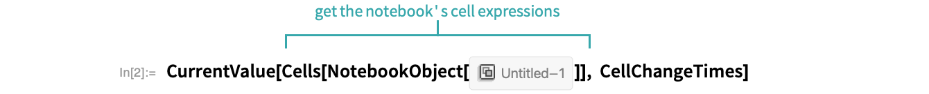 The times when a cell was edited are recorded in its CellChangeTimes option. Extract a notebook’s cell expressions along with their change times with Cells and NotebookRead: