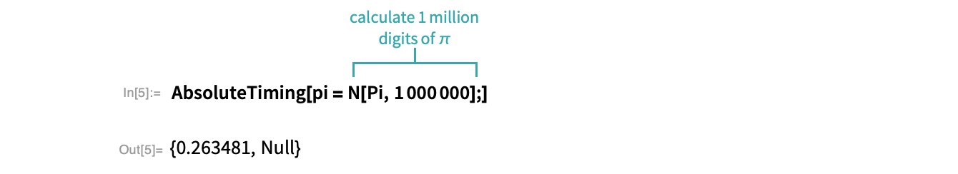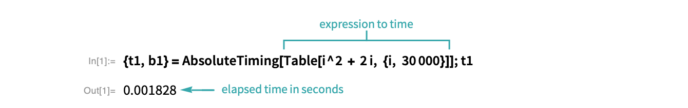 - An expression with no output or suppressed output will return Null when wrapped with AbsoluteTiming.