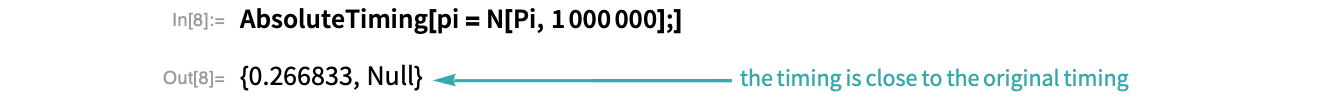 Compare this with the timing of the analogous evaluation that uses a Do loop: