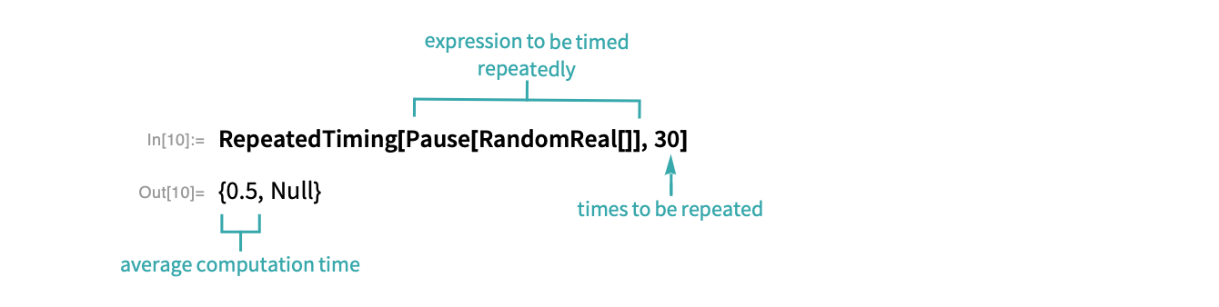 RepeatedTiming returns the average timing of repeated evaluations of the same input: