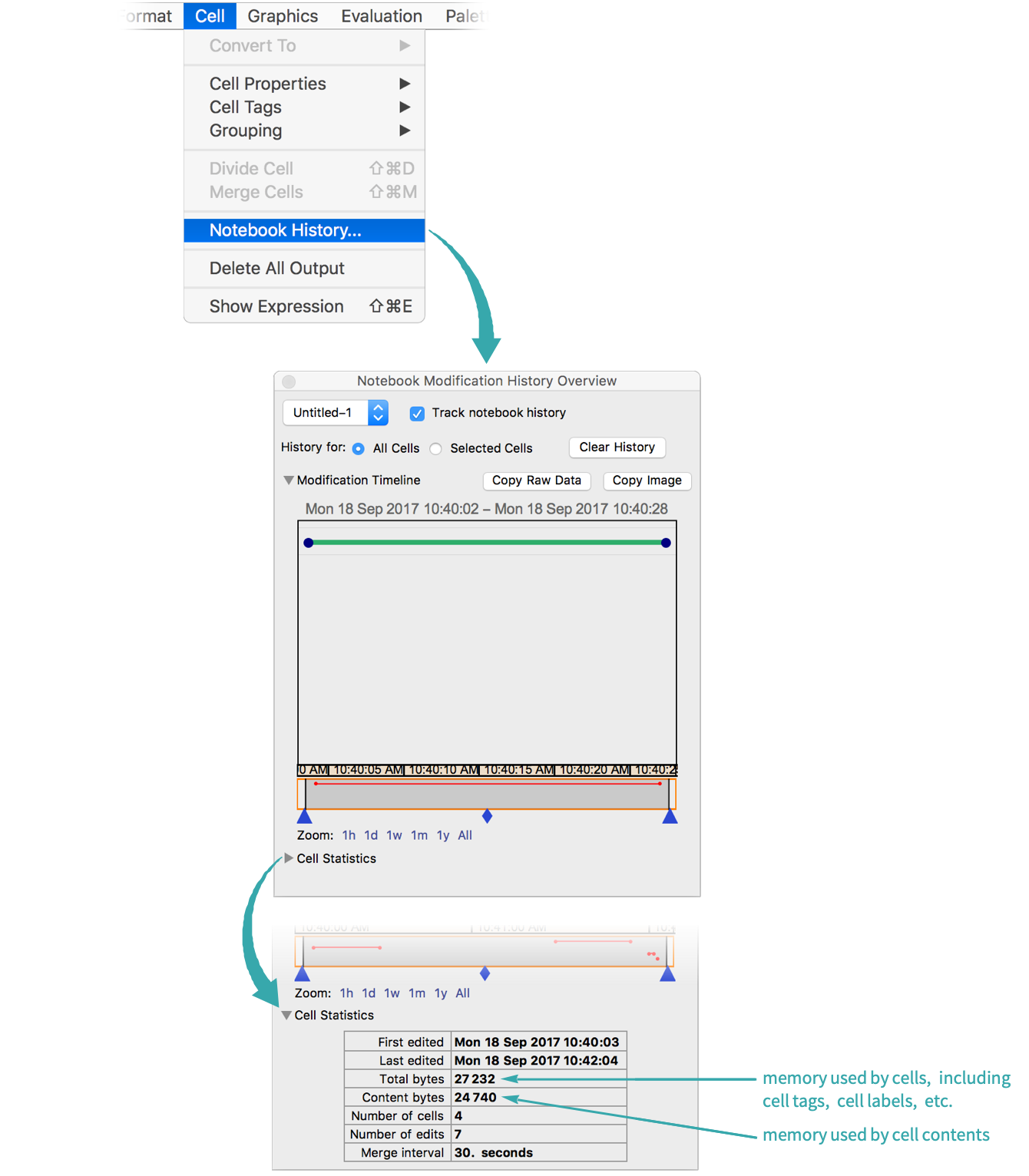 - Cell Statistics does not include memory used for non-cell notebook data.