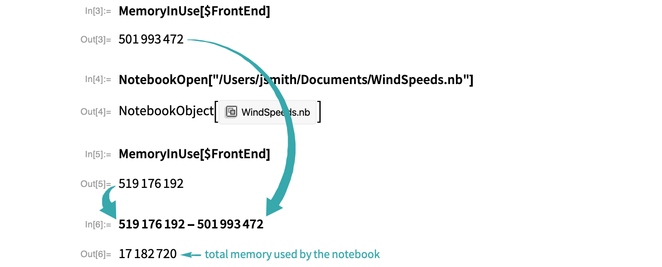 FileSize NotebookFileName ByteCount MemoryInUse MemoryAvailable