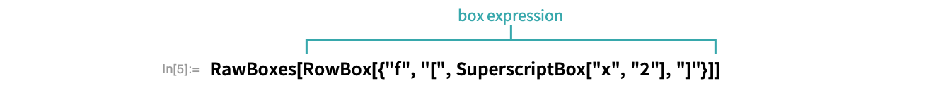 When Wolfram Language expressions are displayed in notebooks, they are represented by two-dimensional typesetting structures of “boxes”. Boxes normally work invisibly behind the scenes, but you can find out what box structure corresponds to a given expression.