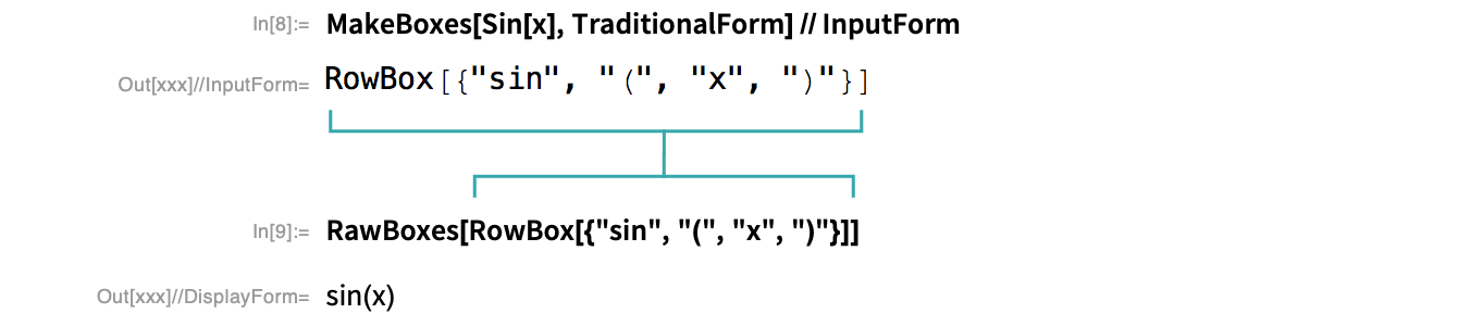 MakeBoxes ToBoxes DisplayForm StandardForm TraditionalForm RawBoxes