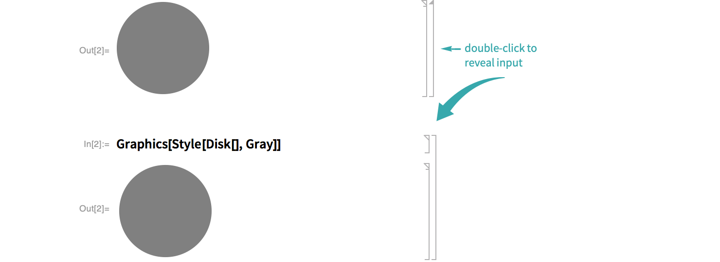 Double-click the cell bracket of a closed group to reveal hidden input: