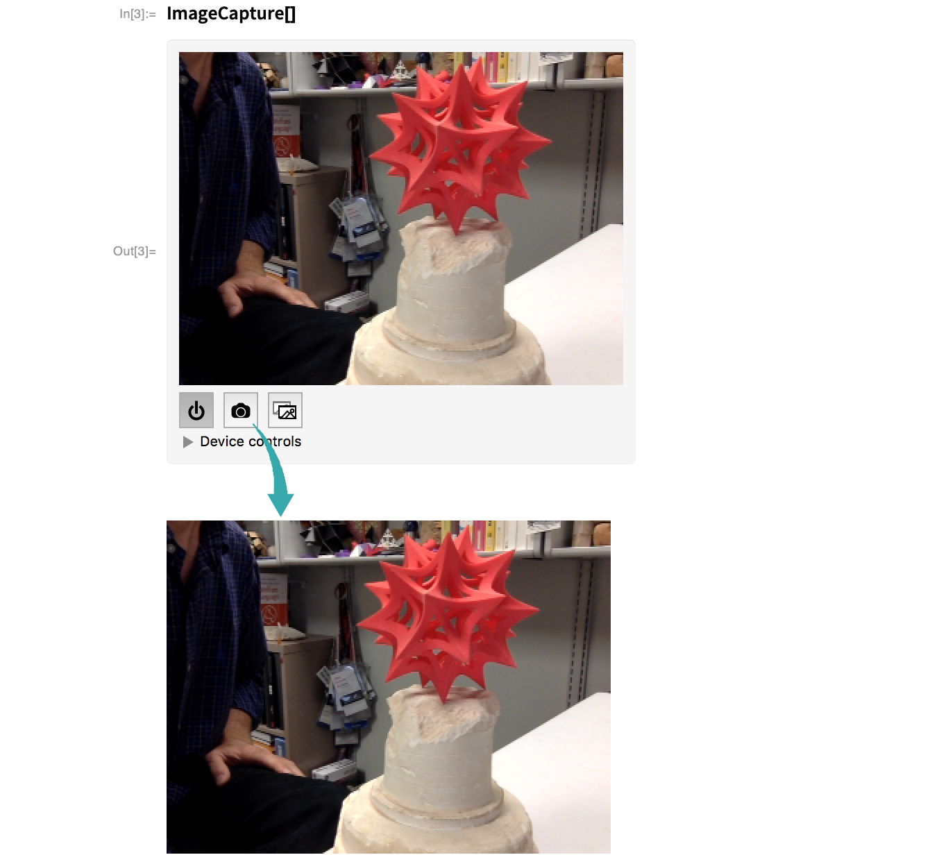 Use CurrentImage to capture the current image seen by a built-in camera: