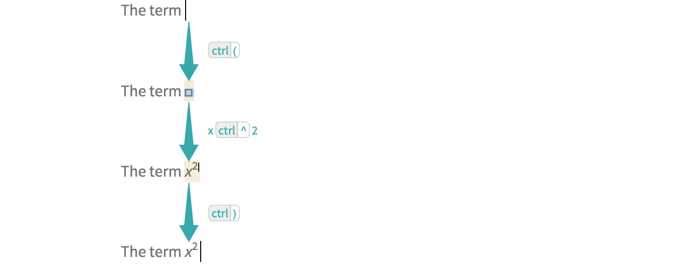 Wolframノートブックではテキストに直接インラインで,タイプセットされた数式を挿入することができる.