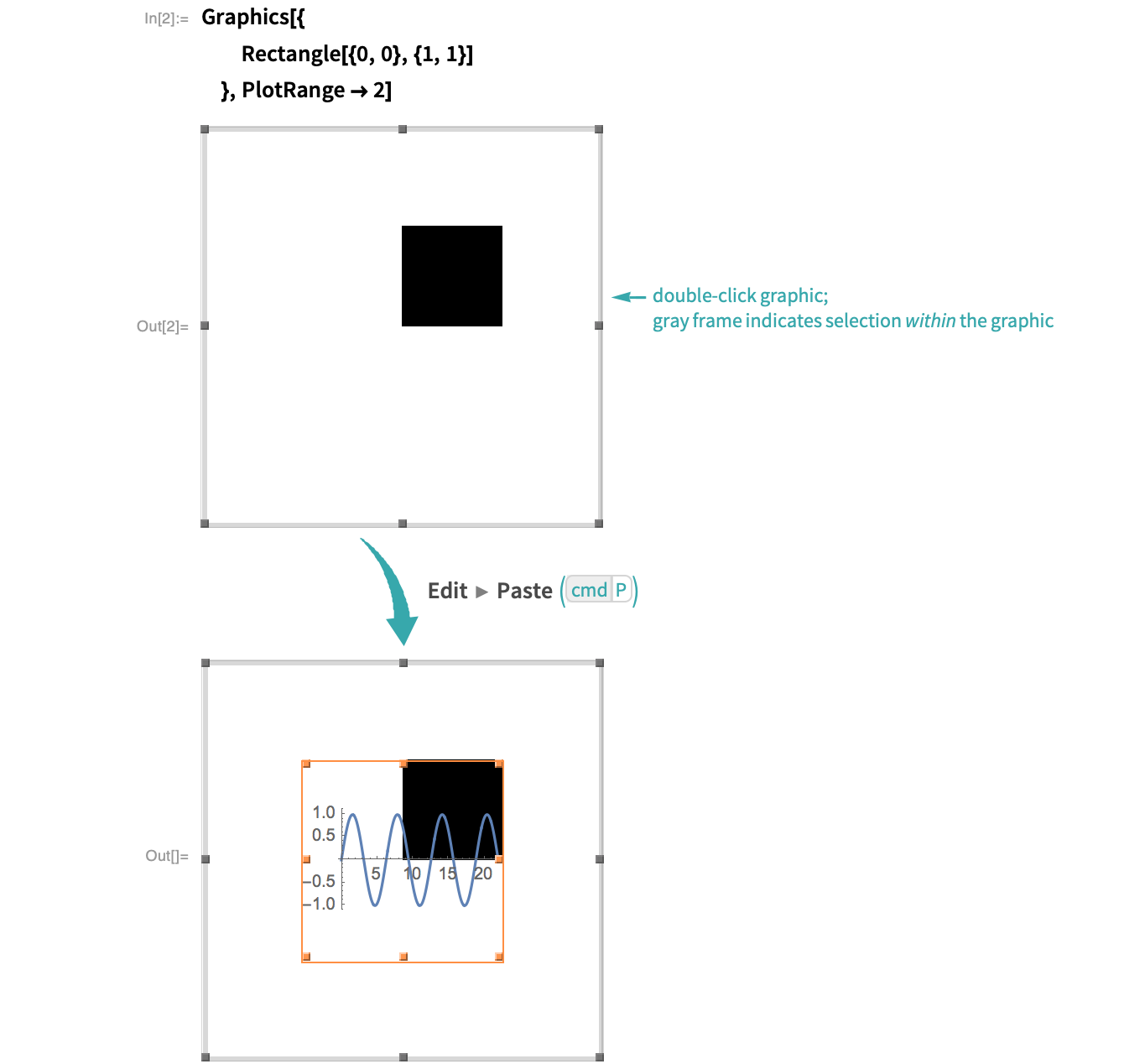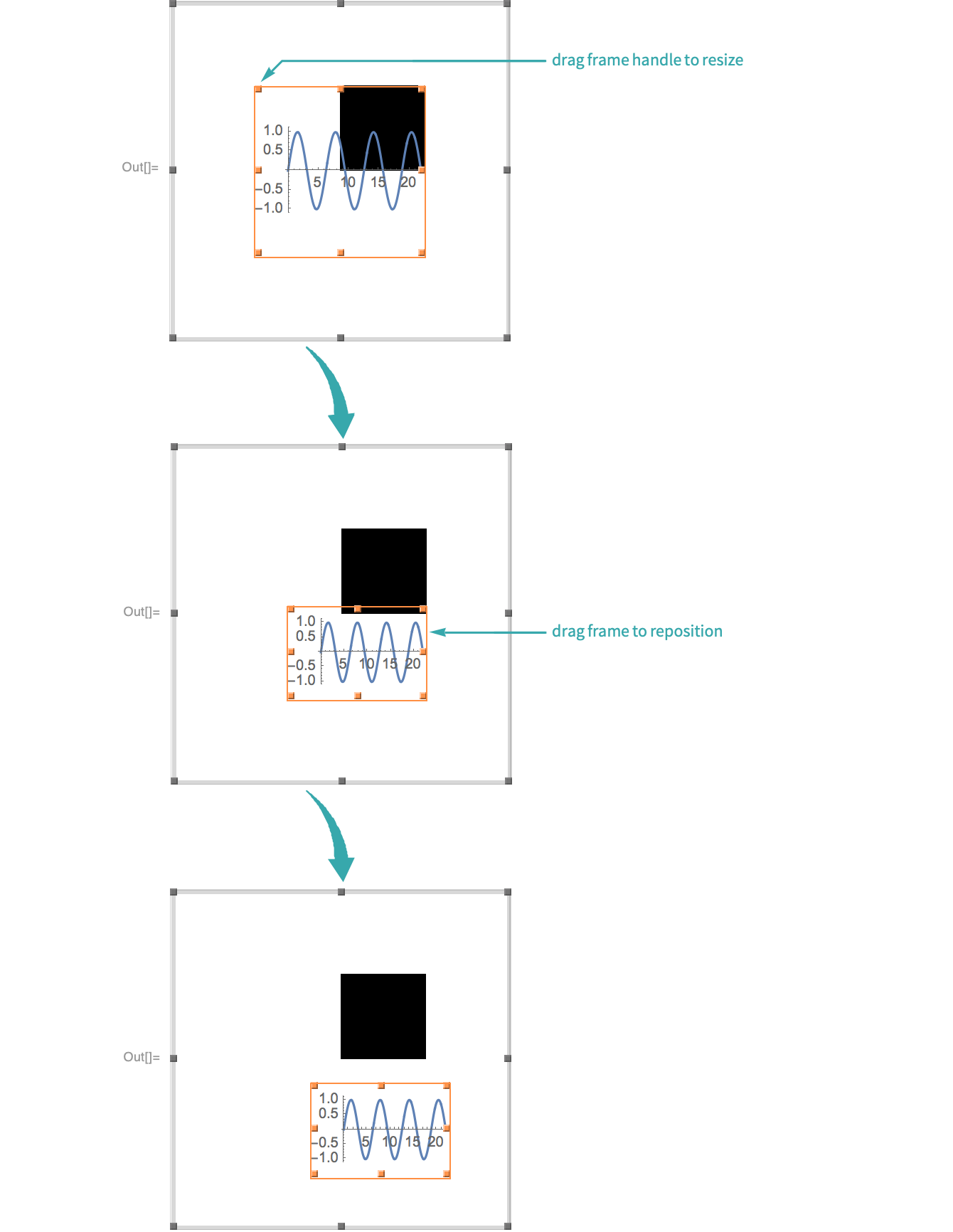 +drag a frame handle. - Any expression can be inset in graphics, including images, 3D graphics and text.