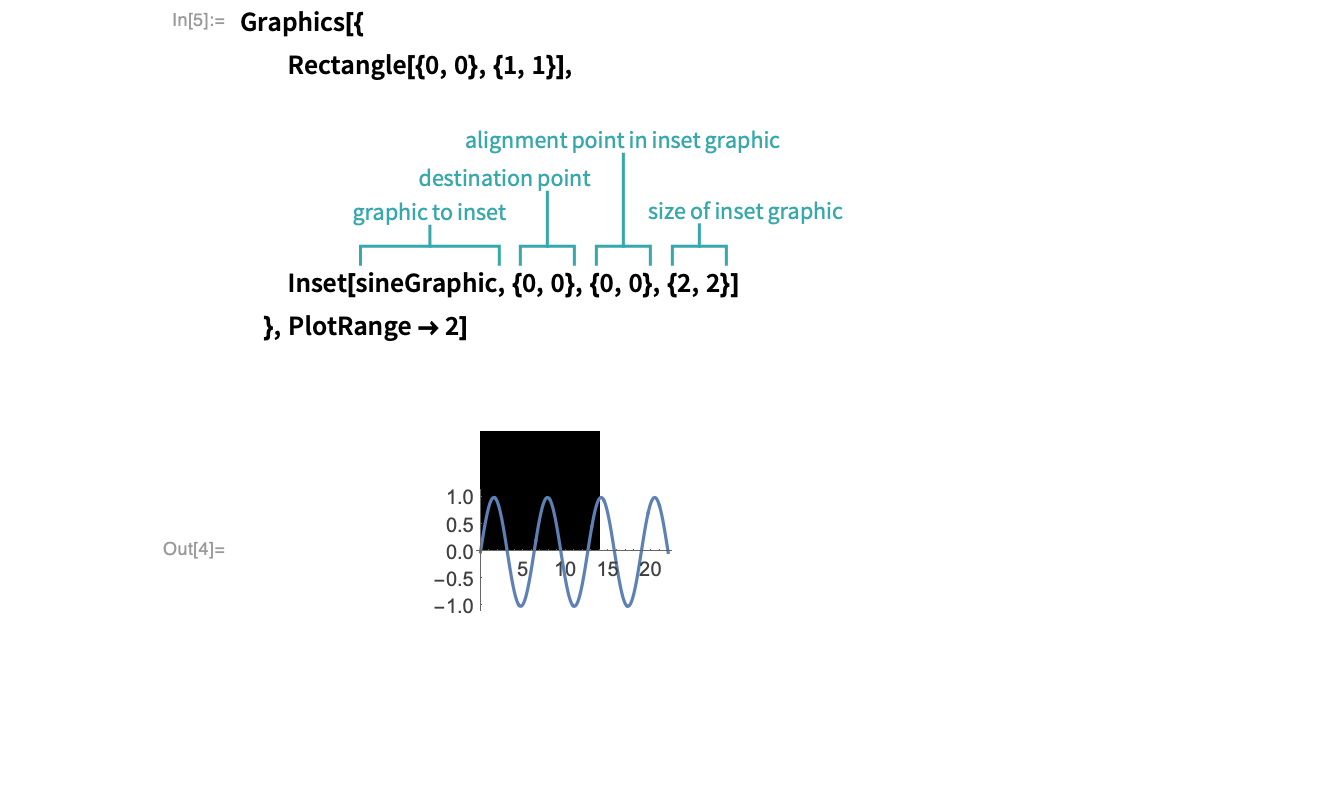 - To achieve exact positioning and alignment of inset graphics, you need to understand graphics coordinate systems—in particular, user, Scaled, ImageScaled and Offset coordinates. See Coordinate Systems for Two‐Dimensional Graphics for more information.