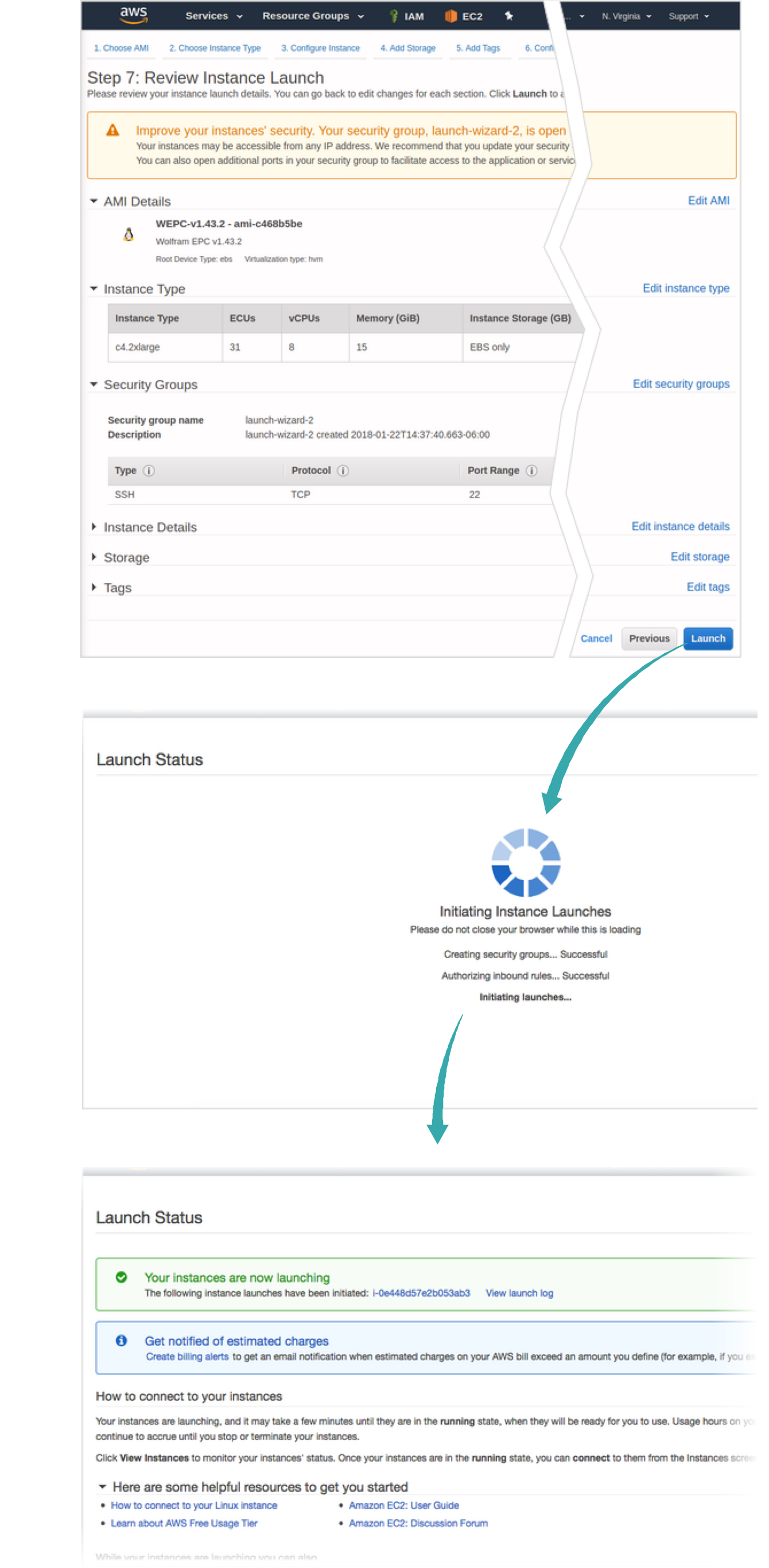 After completing the configuration steps, check that you have properly configured your instance for your organization. If you are sure that the configuration is correct, click “Launch” to launch the EPC instance: