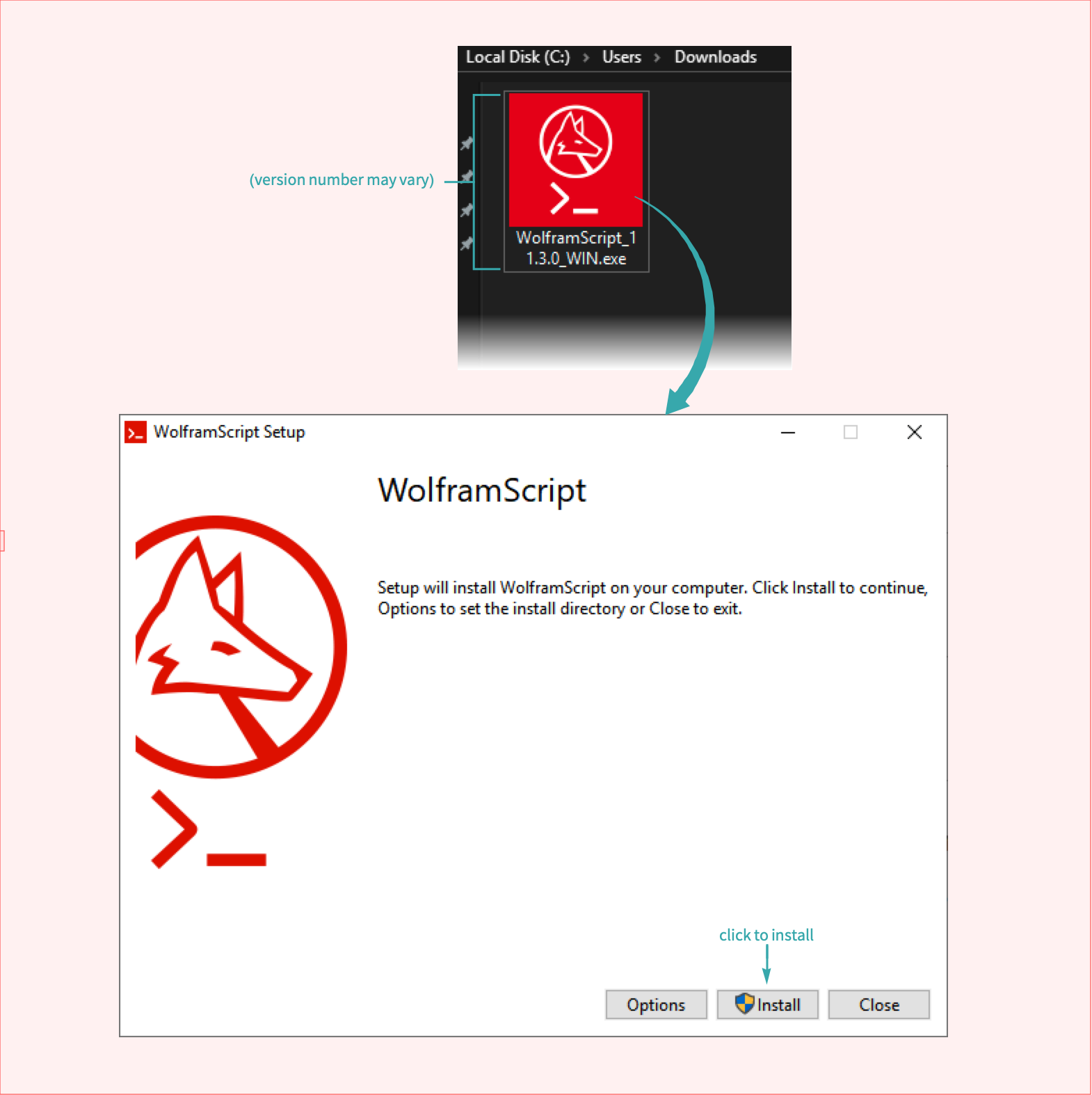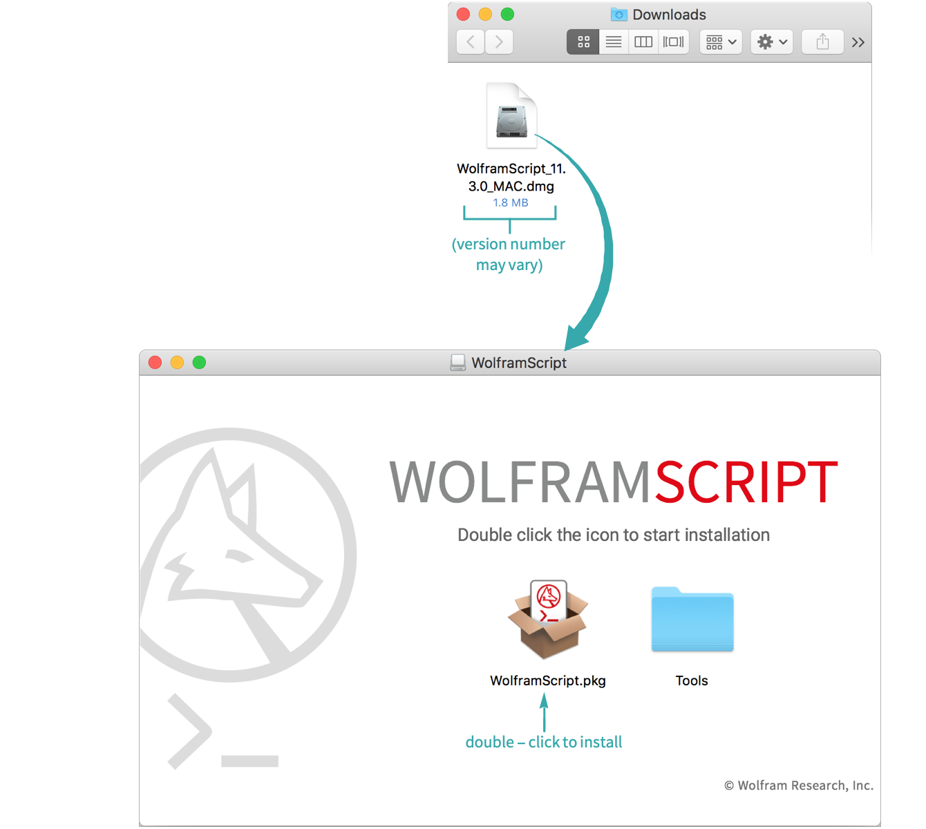 Locate the downloaded WolframScript installer and run it to install WolframScript: