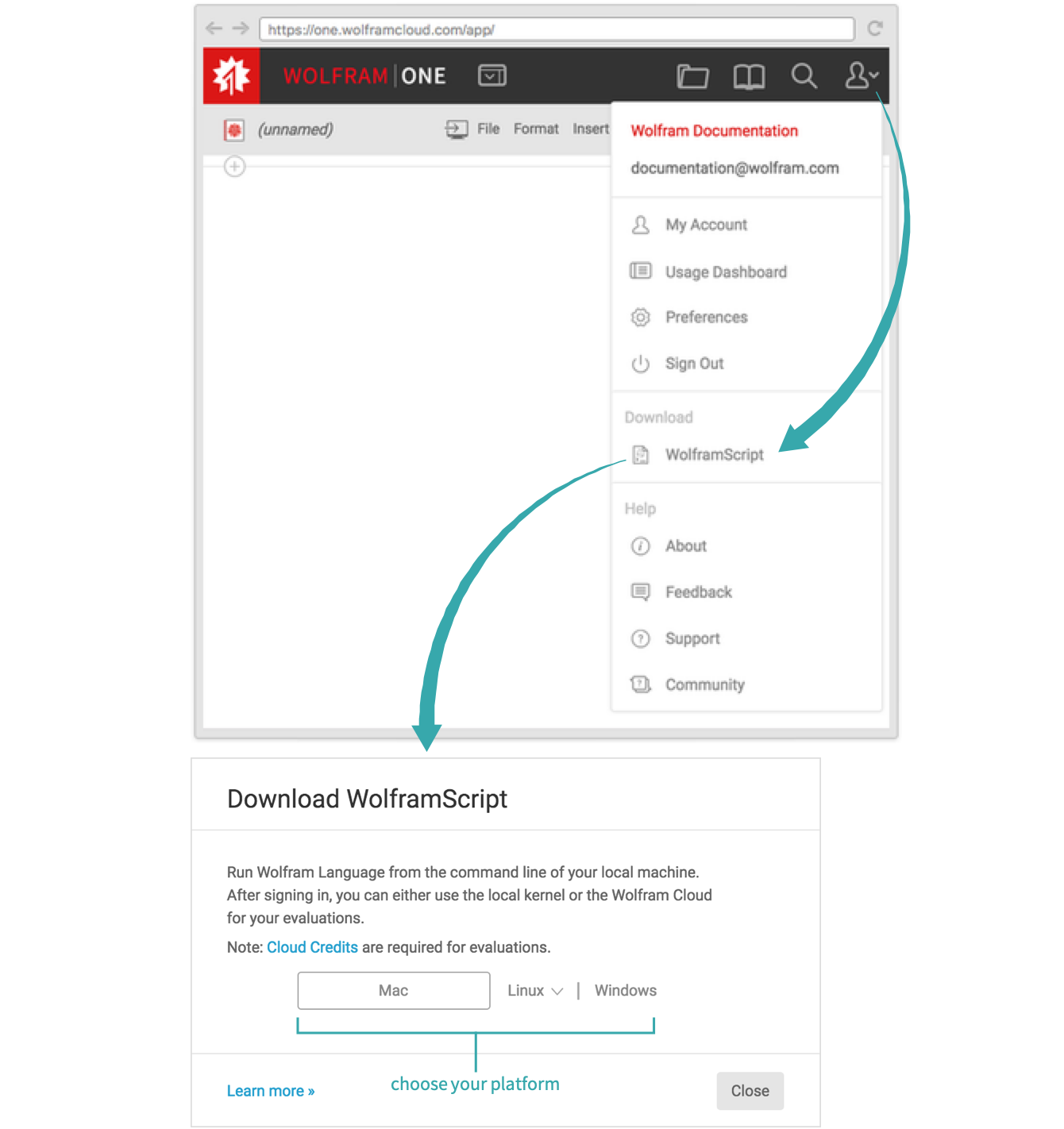 Choose WolframScript from the the Account & Settings menu to download the WolframScript installer: