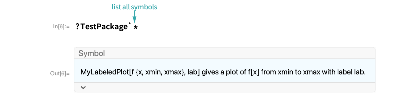 Get a listing of the symbols and functions defined in the package. Click a name for a brief description. Click >> in the description to go to documentation: