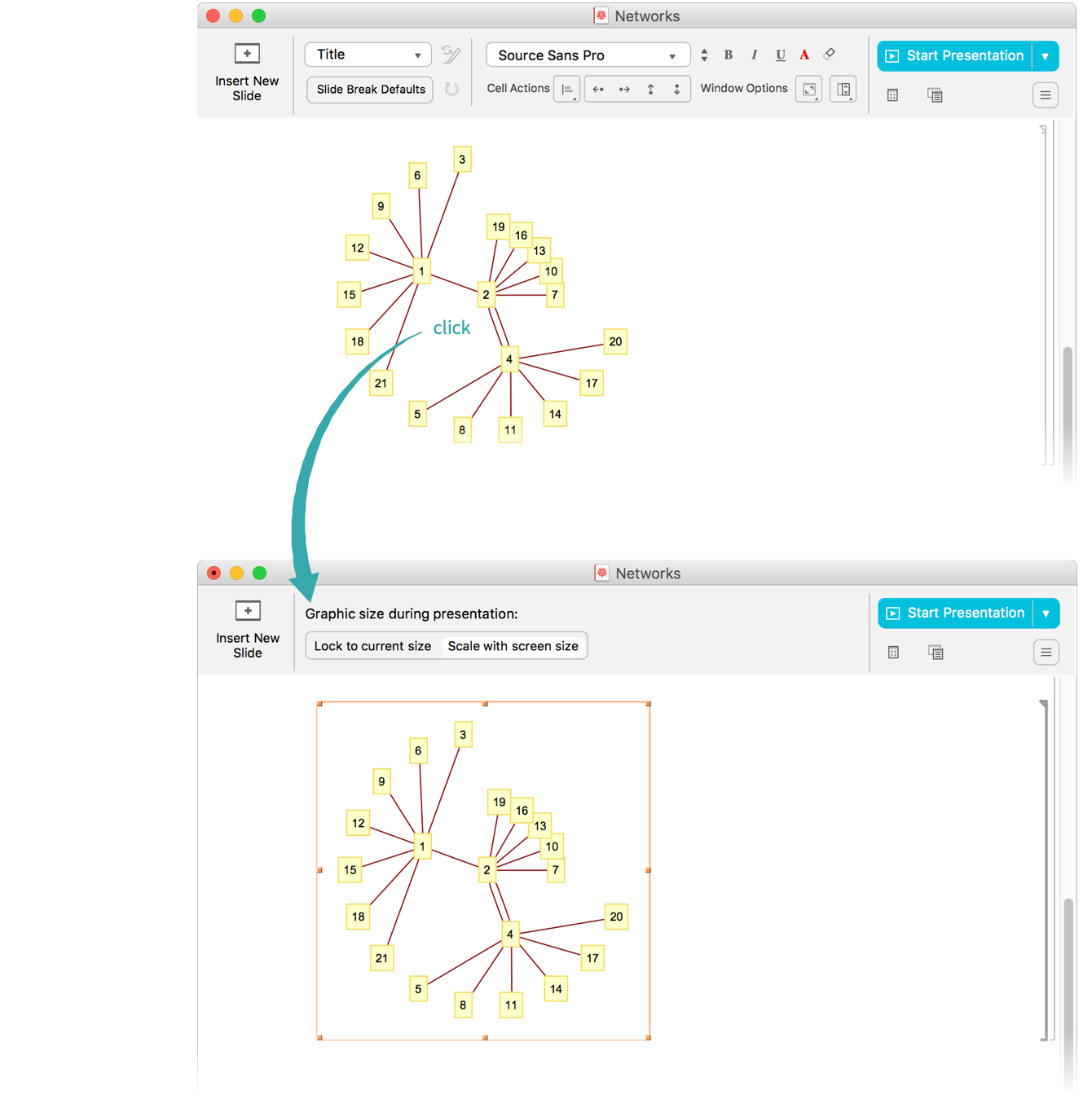 By default, images scale when you change the width of a presenter notebook. You can lock the size of an image to keep it from scaling.