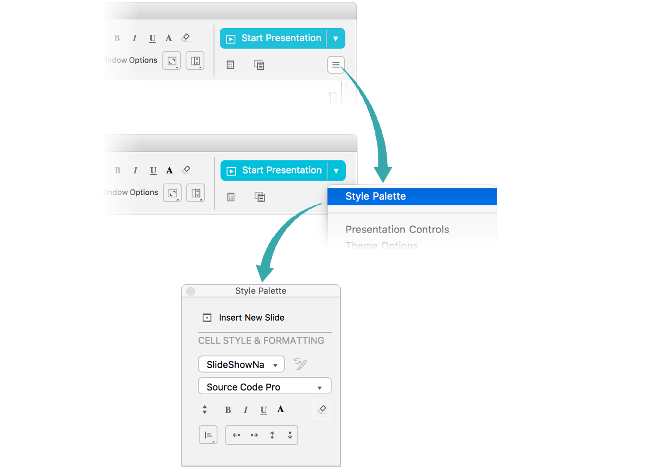 - The Style Palette can also be opened in presentation mode. See Use the Style Palette in a Presentation for information on how to access the Style Palette.
