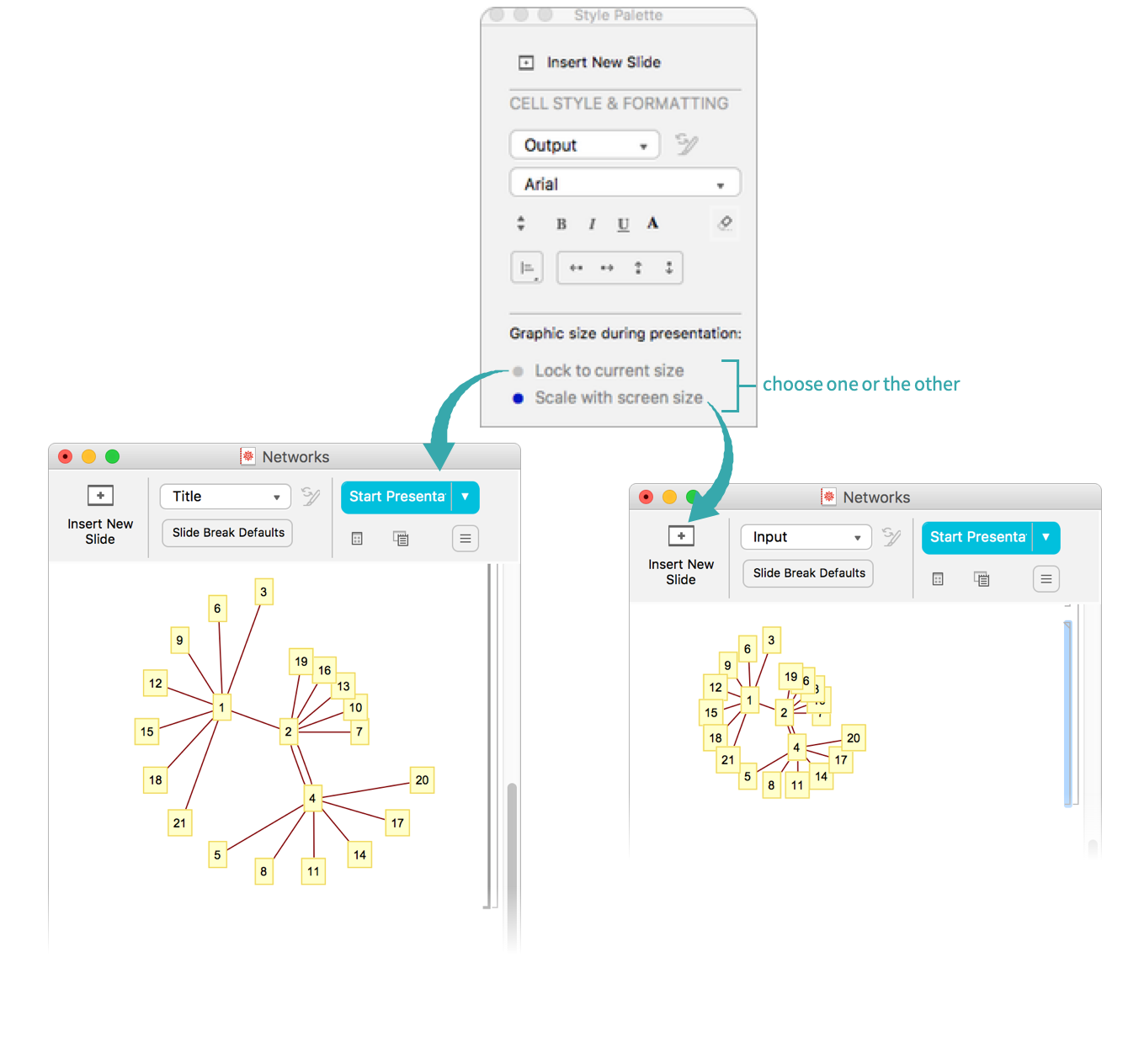 - Scaling buttons are also available in the Style Palette. See Use the Style Palette in a Presentation for information on how to access the Style Palette.