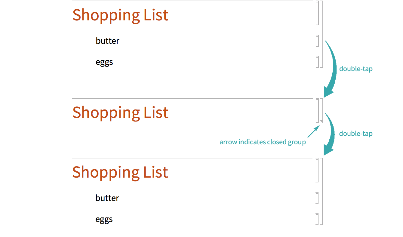 Double-tap a group’s cell bracket to open or close the group: