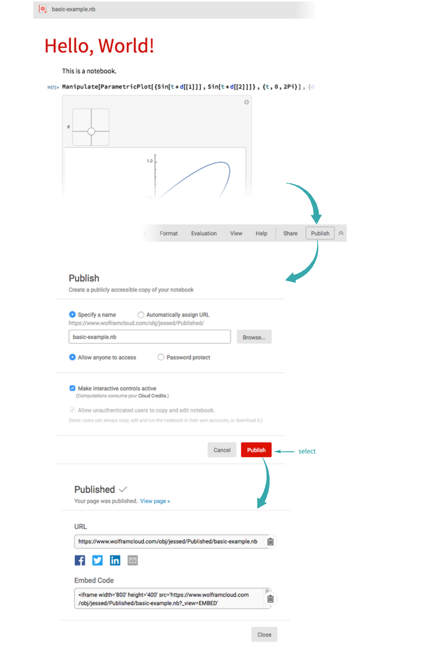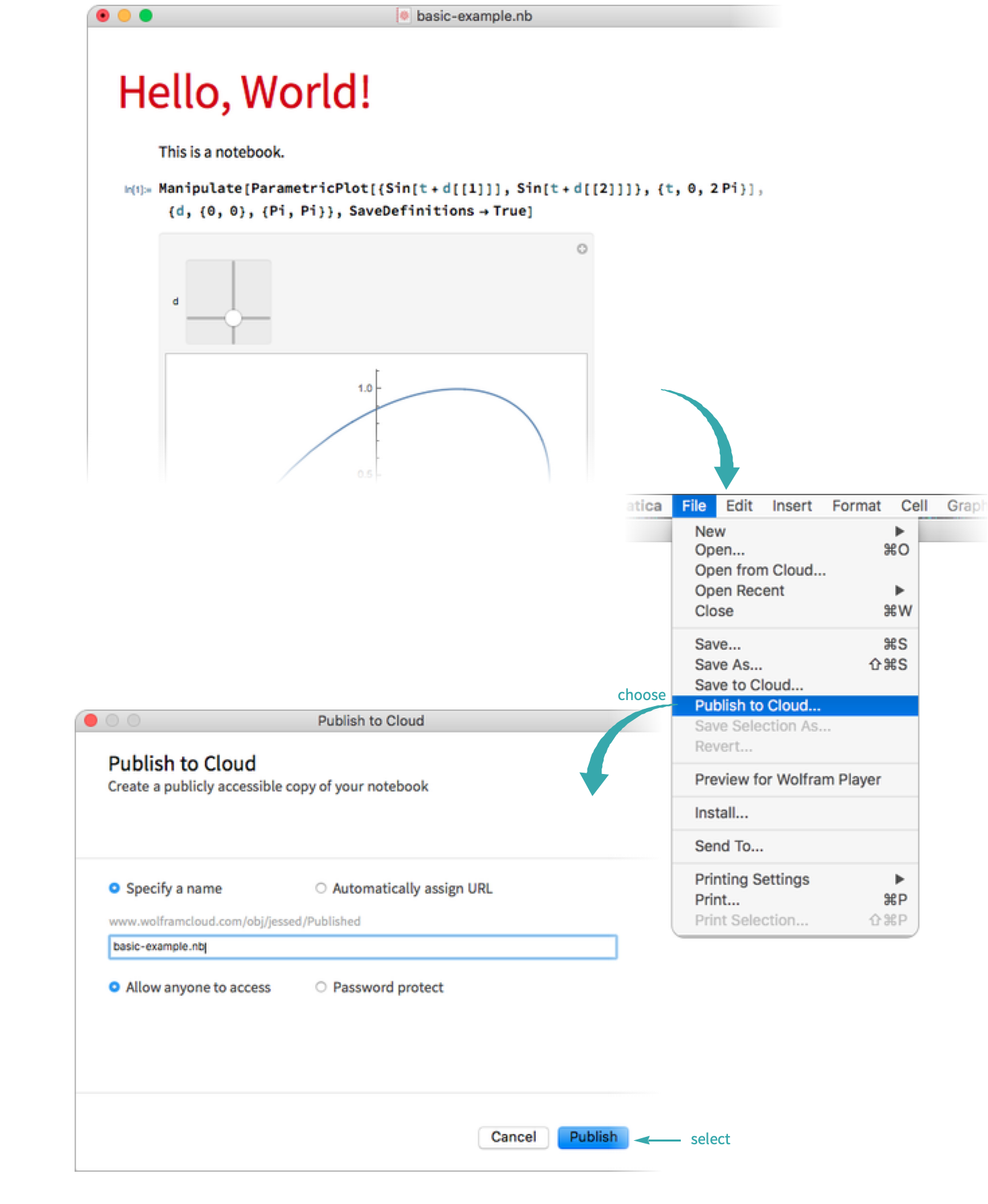 Publish a notebook document that can be viewed by anyone in the Wolfram Cloud.