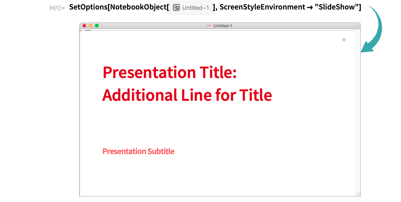 Use SetOptions to change the screen environment from Slideshow Working to Slideshow Presentation: