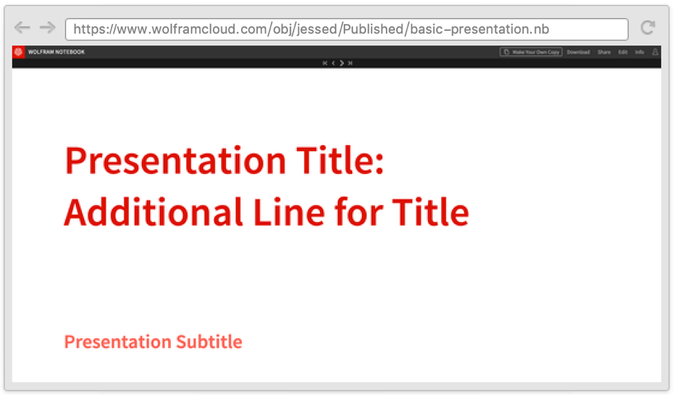 - To edit a published presentation, you must be signed in the Wolfram Cloud and make a copy of the CloudObject that lives in your cloud files.