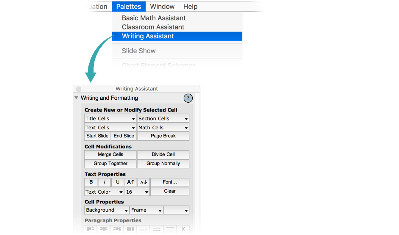 Choose Palettes ▶ Writing Assistant to open the Writing Assistant palette: