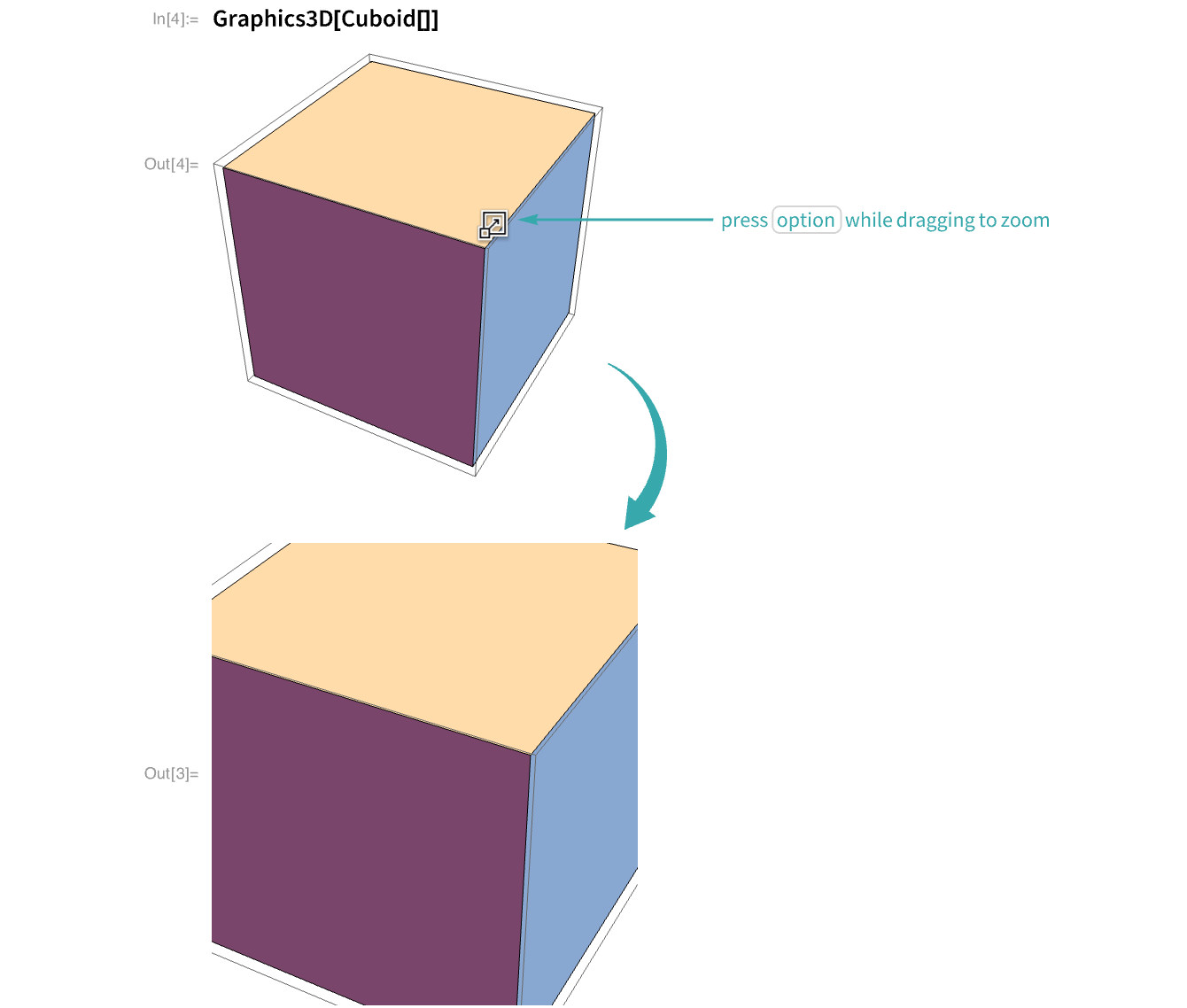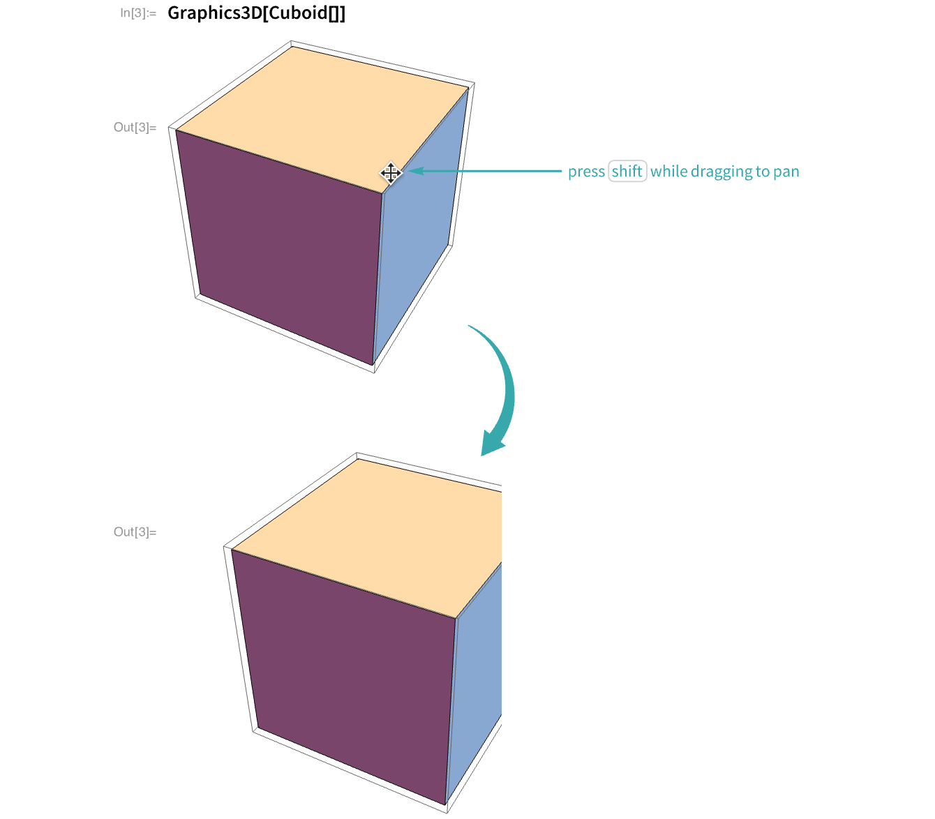 Use modifier keys to rotate, pan and zoom when dragging a 3D graphic.