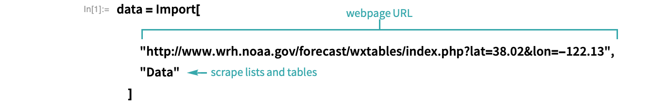 Data on webpages is often stored in list (<li>...</li>) and table (<table>...</table>) elements. You can extract all of the lists and tables on a page using the "Data" element of Import.