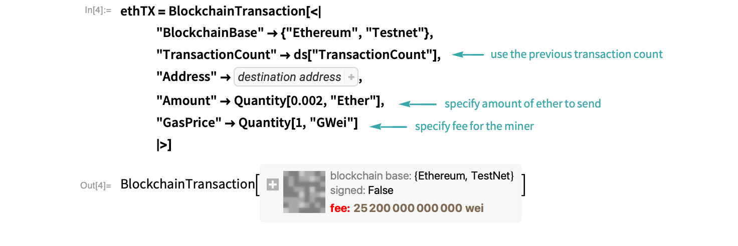Use BlockchainTransaction to build the transaction object, using the preceding transaction count: