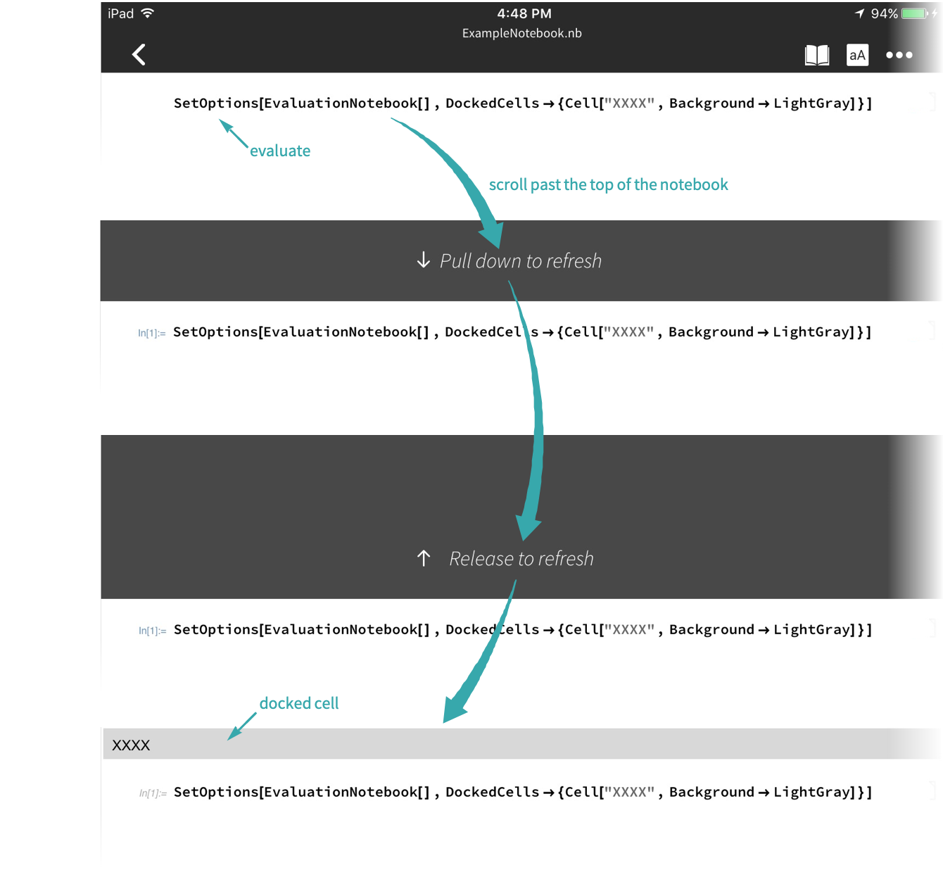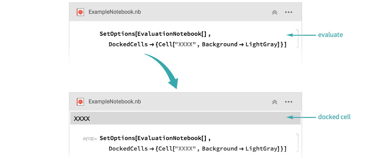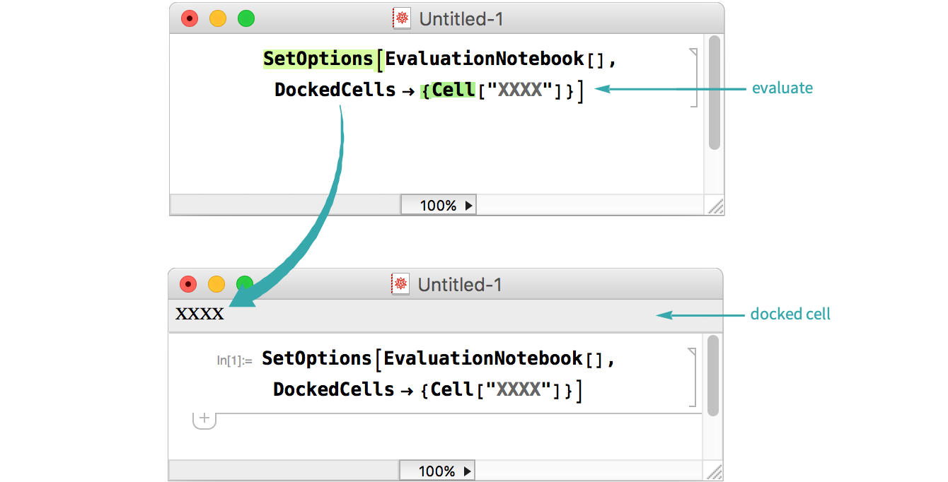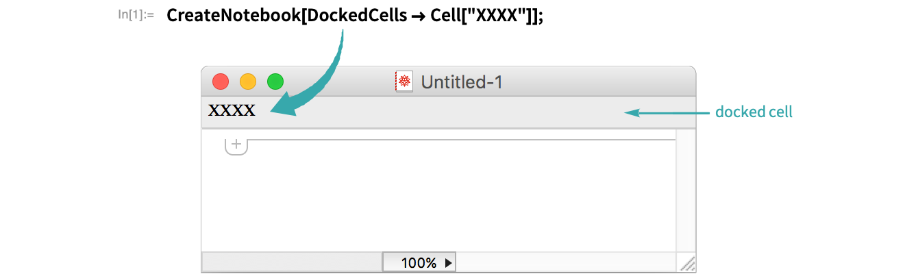 Set the DockedCells option to add a docked cell to the current notebook. Scroll past the top of the notebook to refresh, making the docked cell visible: