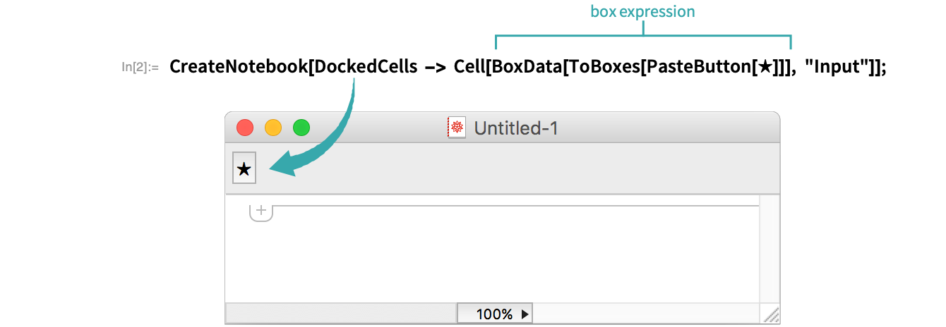 The value of DockedCells requires low-level representations of typeset cells, typically constructed using Cell, BoxData and ToBoxes: