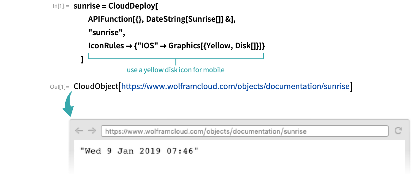 Deploy an app to the cloud that gives the time of the next sunrise. Give it a yellow disk icon: