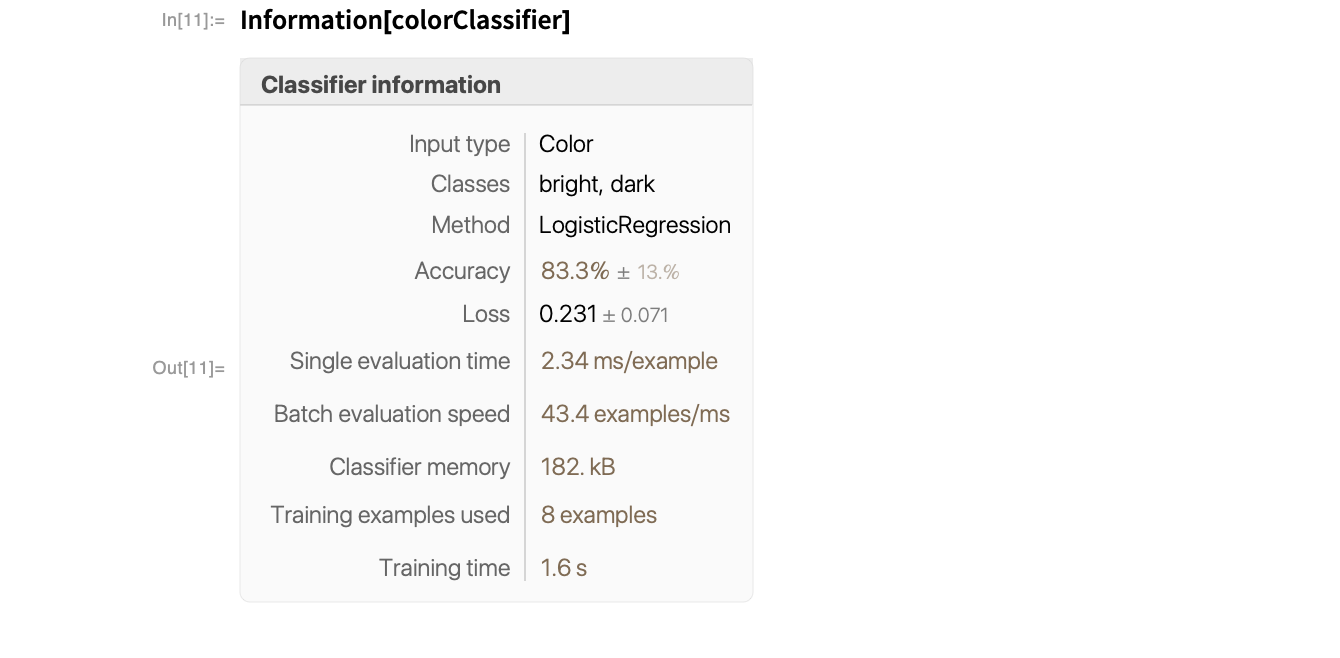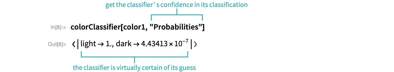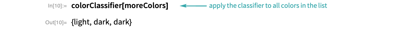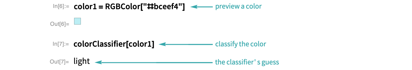 Give the classifier a new color. It will infer, based on the training data, how to classify the color: